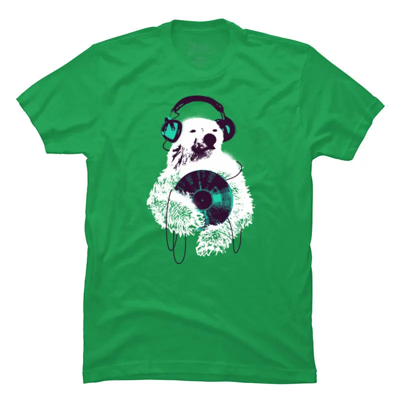 Classic Men’s Top T-shirts Hiphop Record Bear Music Headset Leisure Tops Shirts Pure Cotton Short Sleeve Custom T-shirts New