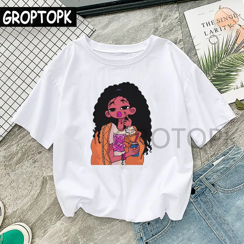 Cool Black Girl Female T-shirt Summer Cotton Casual Women Clothes 2019 Harajuku Top Kawaii Cartoon Hip Hop Clothes Gothic Tshirt
