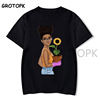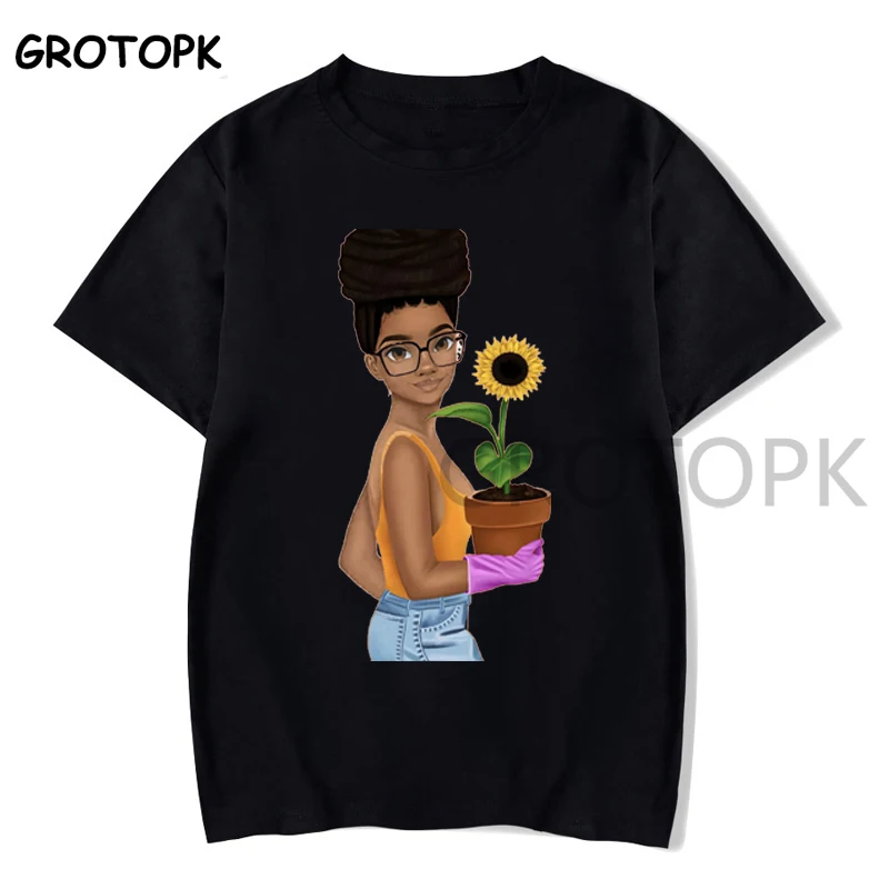 Cool Black Girl Magic with Sunflower Female T-shirt Kawaii Harajuku Top Summer Cotton T-shirts Women T Shirts Tee Shirt Femme