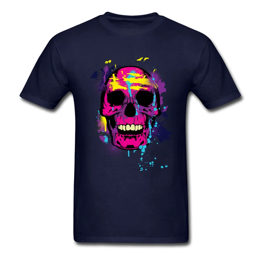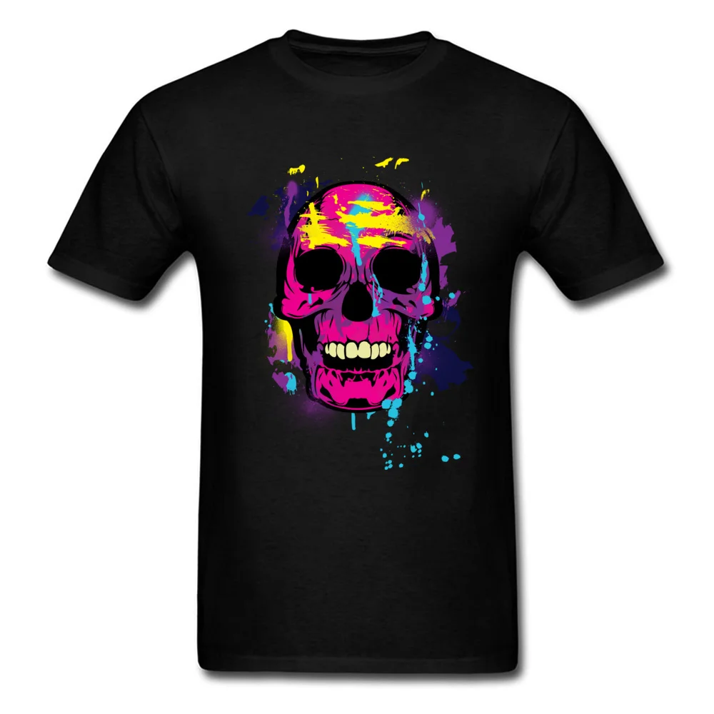 Product Name: Crew Neck Printing Pure Cotton Mens T-shirts Hiphop Skull Black Tops T Shirt Company Birthday T Shirt For Adult Drop Shipping