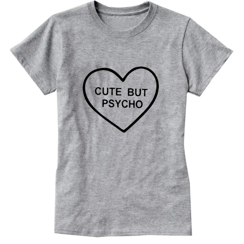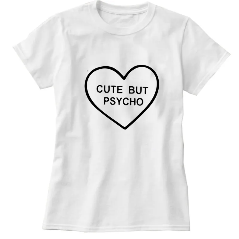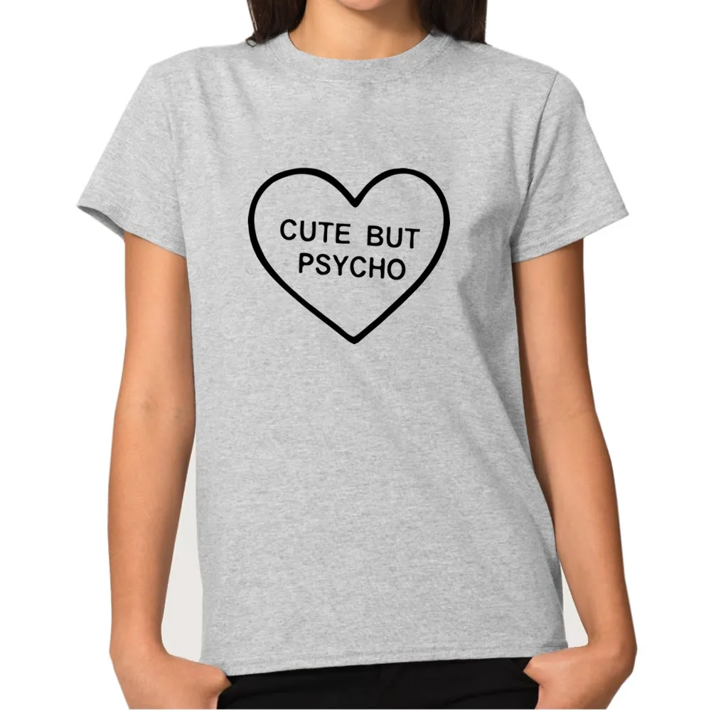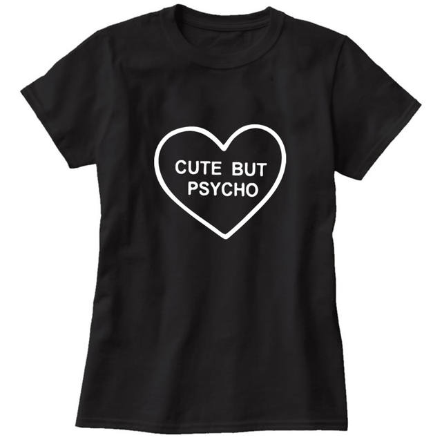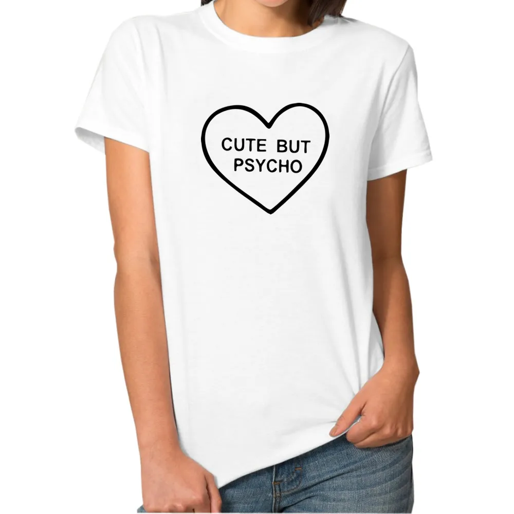 Cute But Psycho heart T-shirts For Women Fashion harajuku funny Cotton T shirt Regular O-neck Shirt Female Tops plus size casual