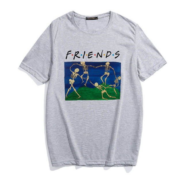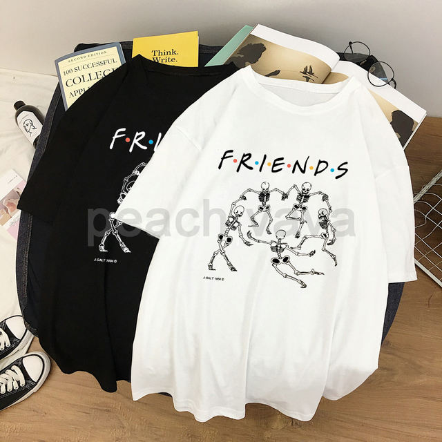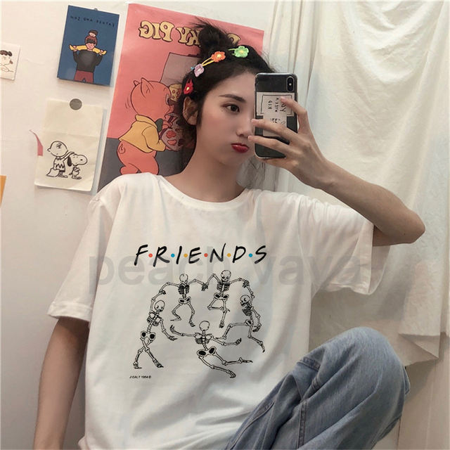 Cute Casual fun Harajuku Aesthetics friend Print tees Women Kawaii Cartoon T-shirt Skeleton Bone Fashion Female short-sleeve top