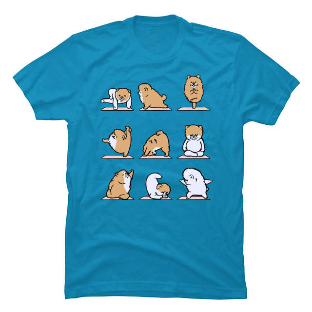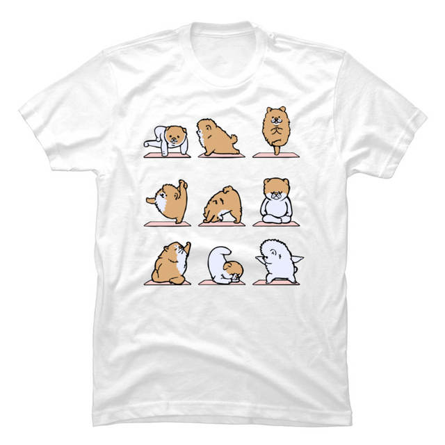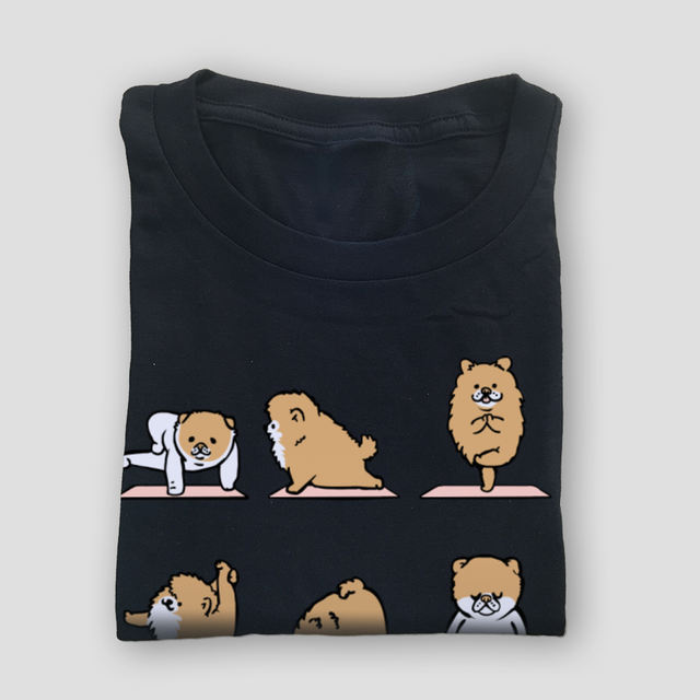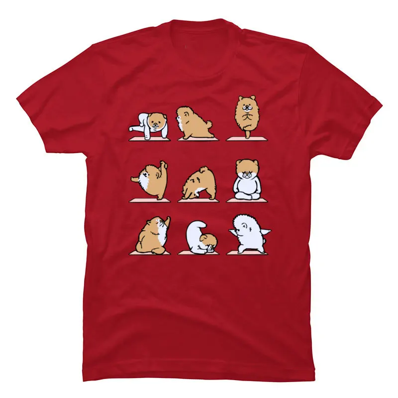 Cute Graphic POMERANIAN T-Shirt Yo-ga Bichon Dog Physical Training Funny Tshirt for Men 100% Cotton Clothing Free Shipping