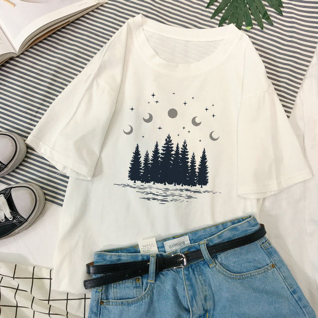 Dark forest Print letter ins Retro universe faith Harajuku Summer Women T-shirt O-neck Short Sleeve Tops tees Female Clothing