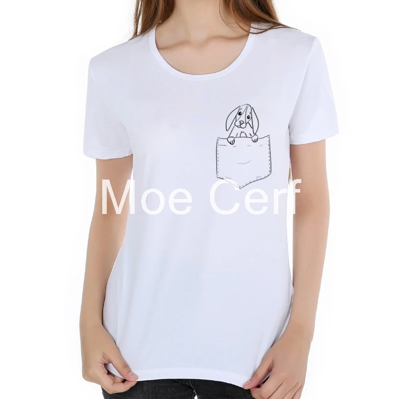 Dog Pocket T Shirt Women Summer Big Pocket Decorated T Shirt Short Sleeve O-neck Mens T-shirts Casual Loose Tops Tees L21-62