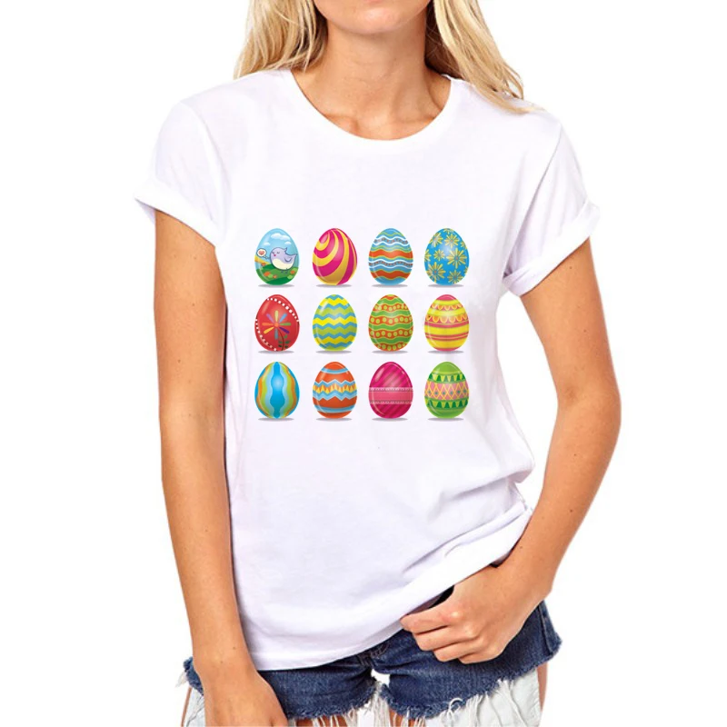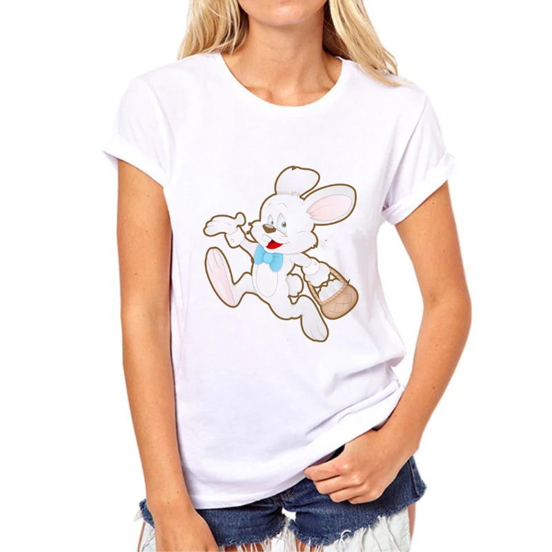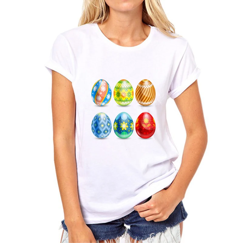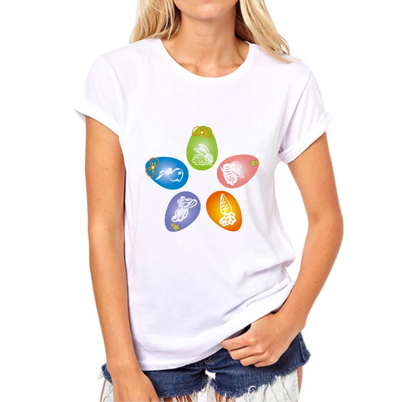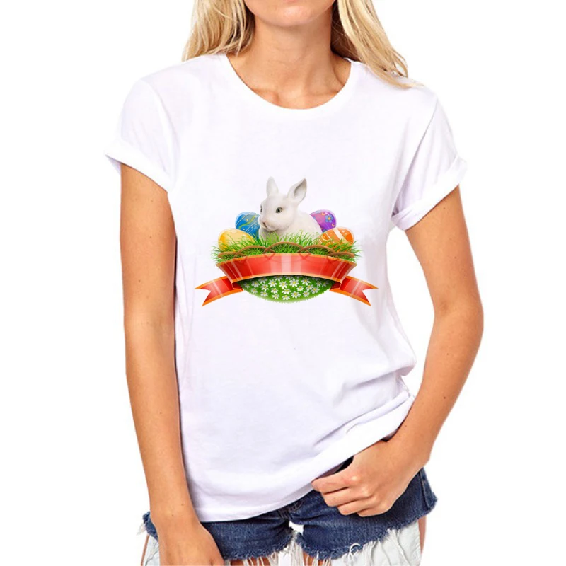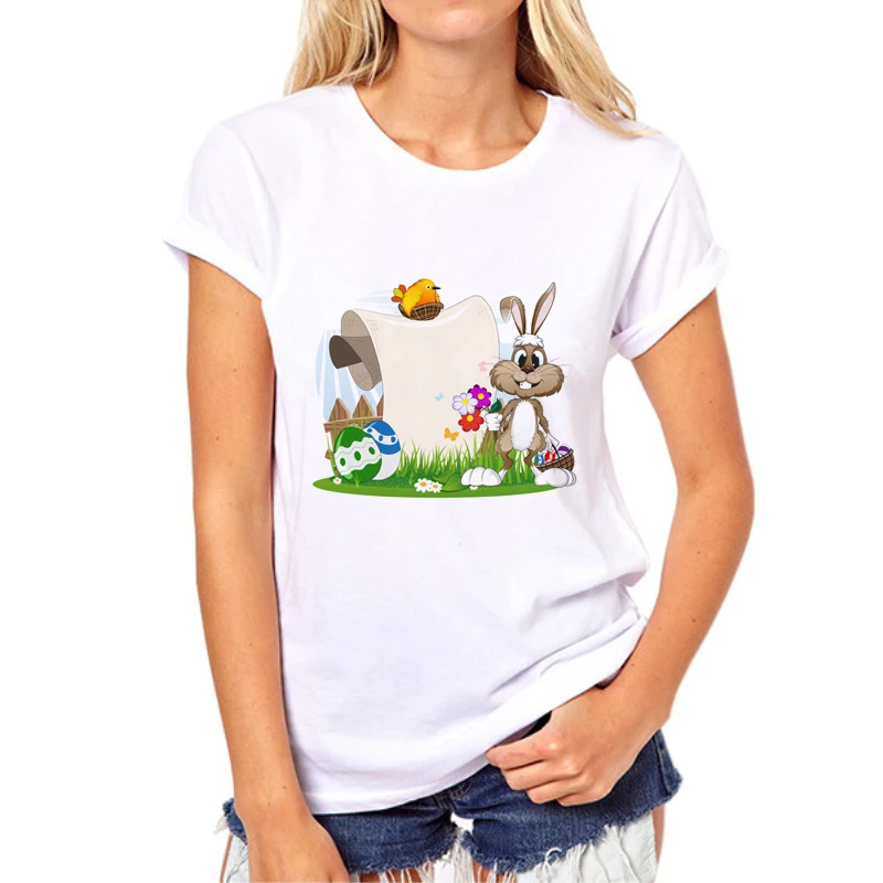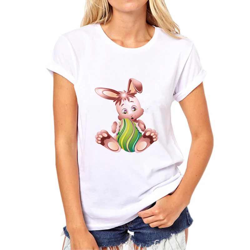 Easter Happy Print T-Shirt 2019 Women’s Summer Rabbit and eggs T-Shirt O-neck Cartoon Rabbit Printed Short Sleeve Fashion 66N-2#