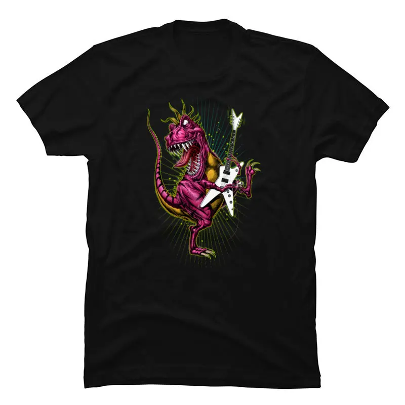 Electric Guitar Rock Dinosaur New Tshirts Normal Summer Fall Loose Tee-Shirt Cotton Crew Neck Clothes For Men Free Shipping