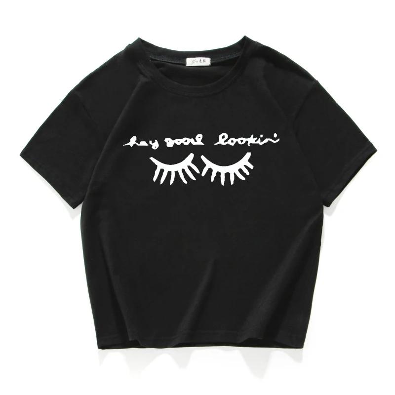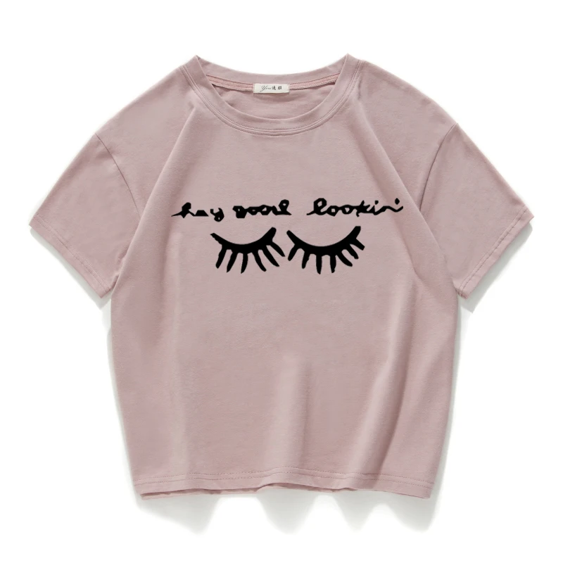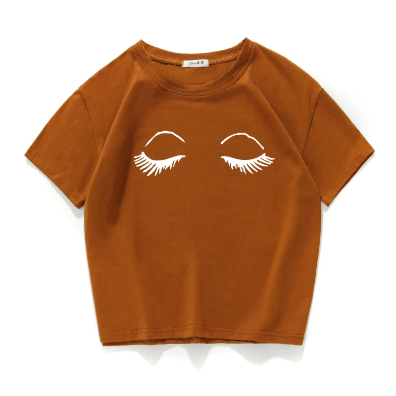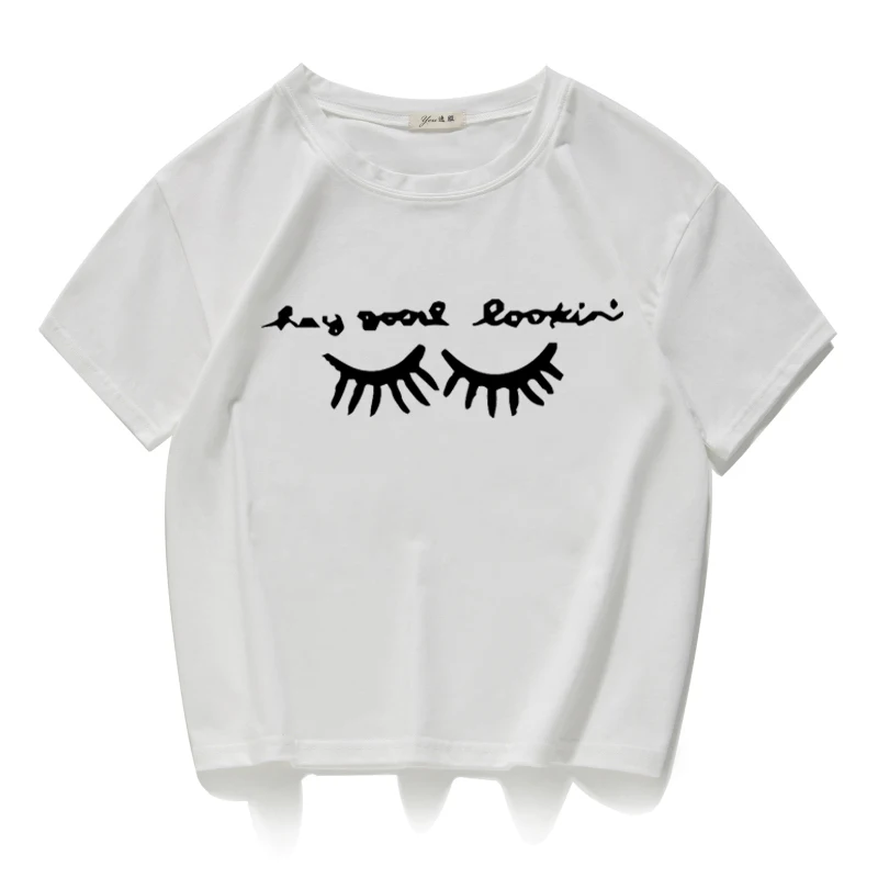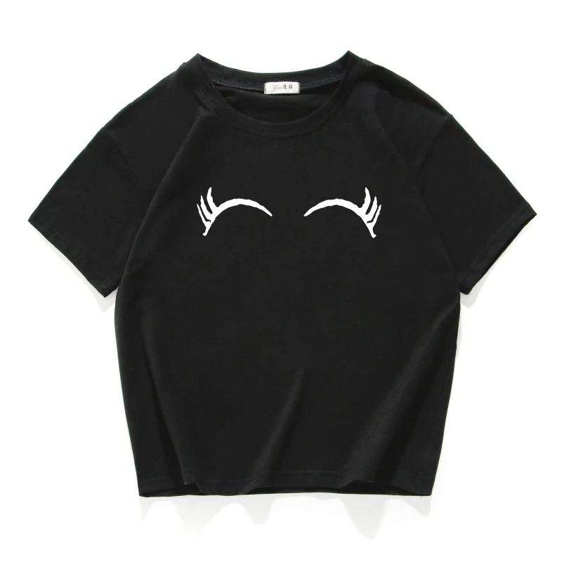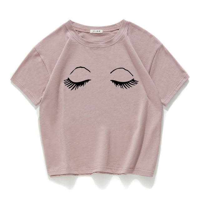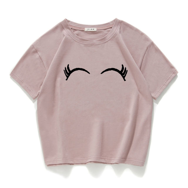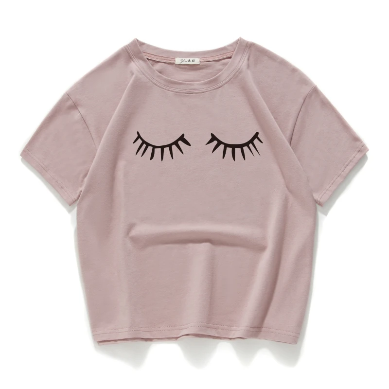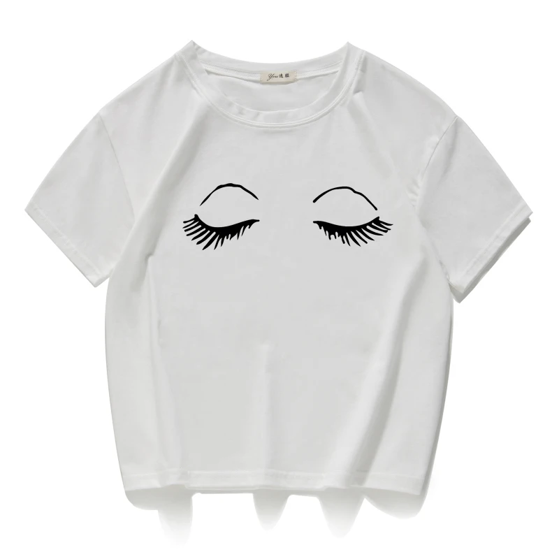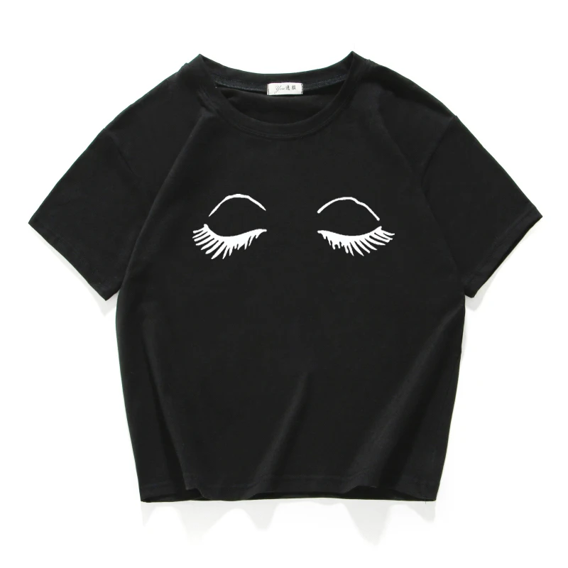 eyelash print vintage short t shirt women Cotton plus size funny lovely crop top summer loose tee shirt femme harajuk cool tops