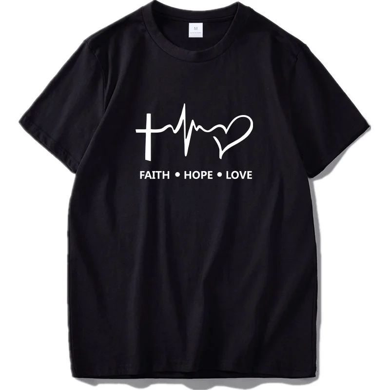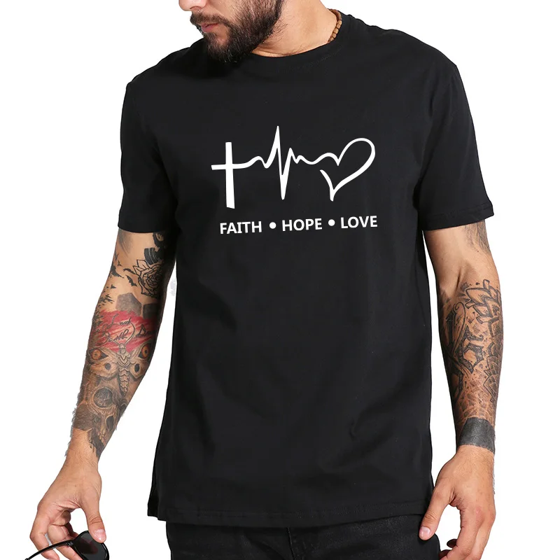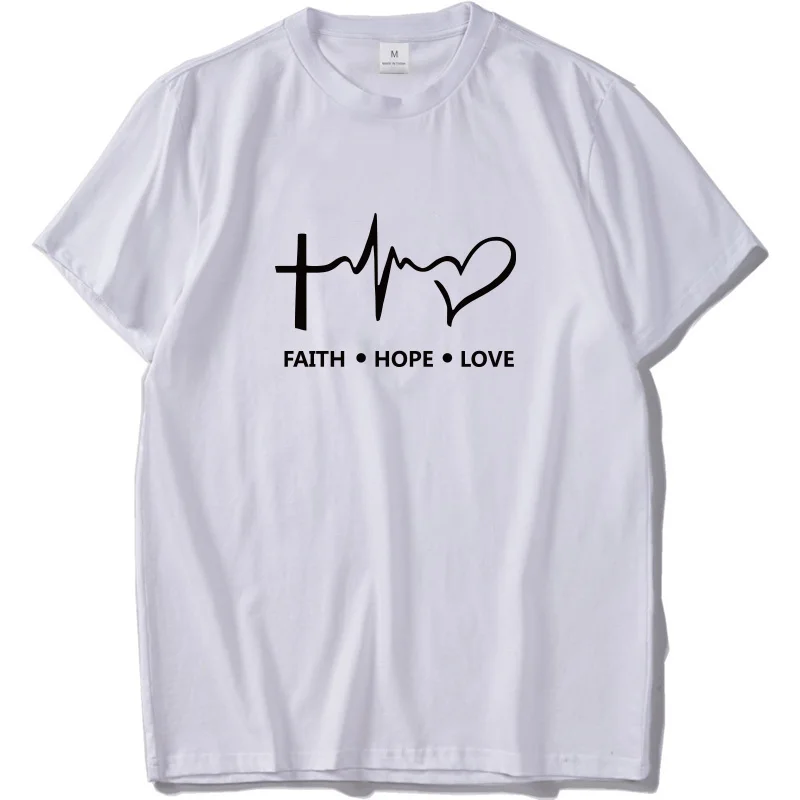 Faith Hope Love T Shirt Christian God Teen Gift Tshirt Homme 100% Cotton Short Sleeve T-shirt Hipster EU Size