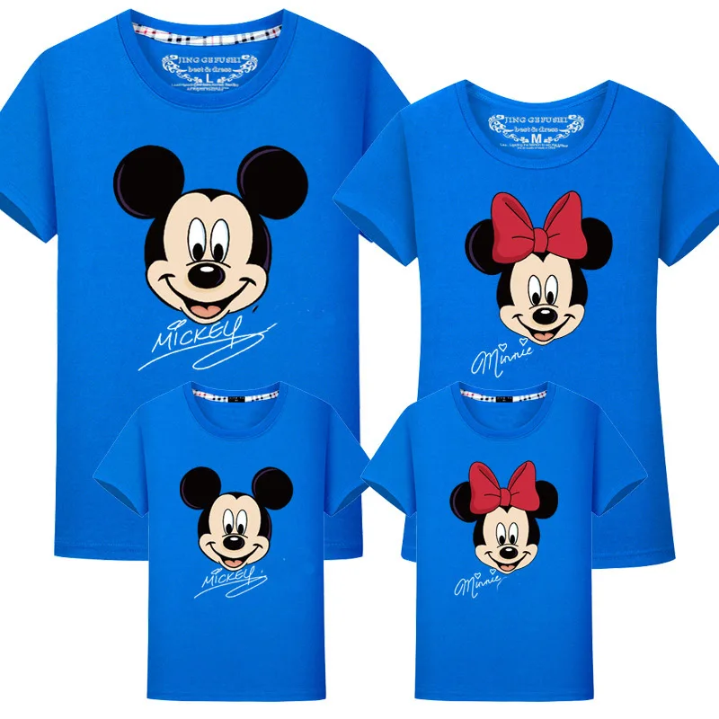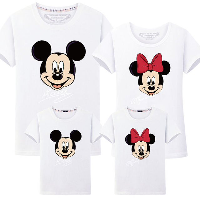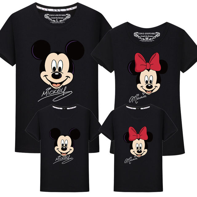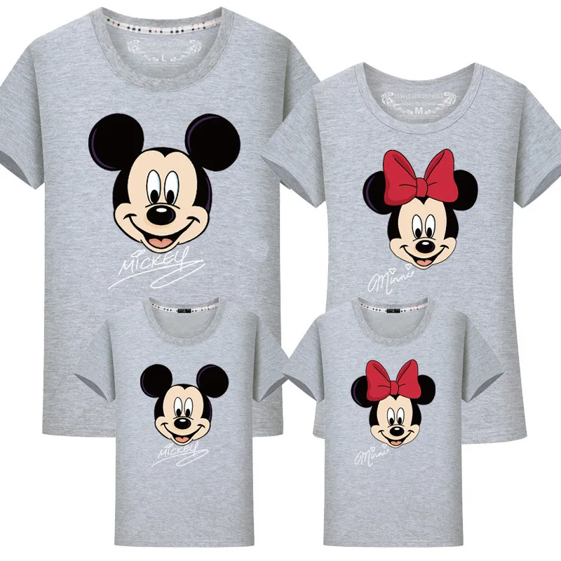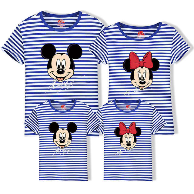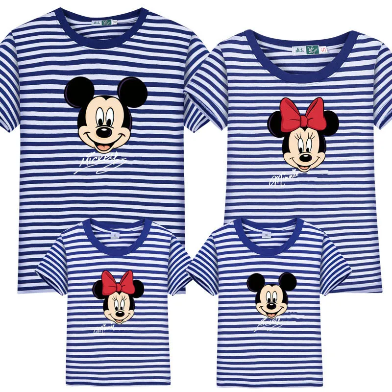 family matching clothes mommy and me tshirt Minnie Mickey Cartoon Short-sleeved Cotton Kids Girls Boys Clothing Children T-shirt