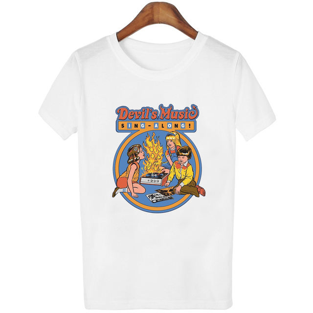 Fashion Fun Vintage Women cartoon print Short Sleeve devil’s music Demons Graphic chic Harajuku Summer Tumblr T-shirt Women tops
