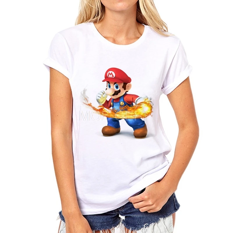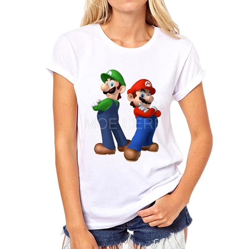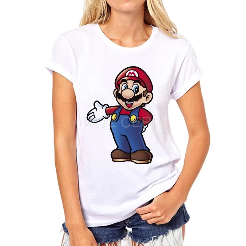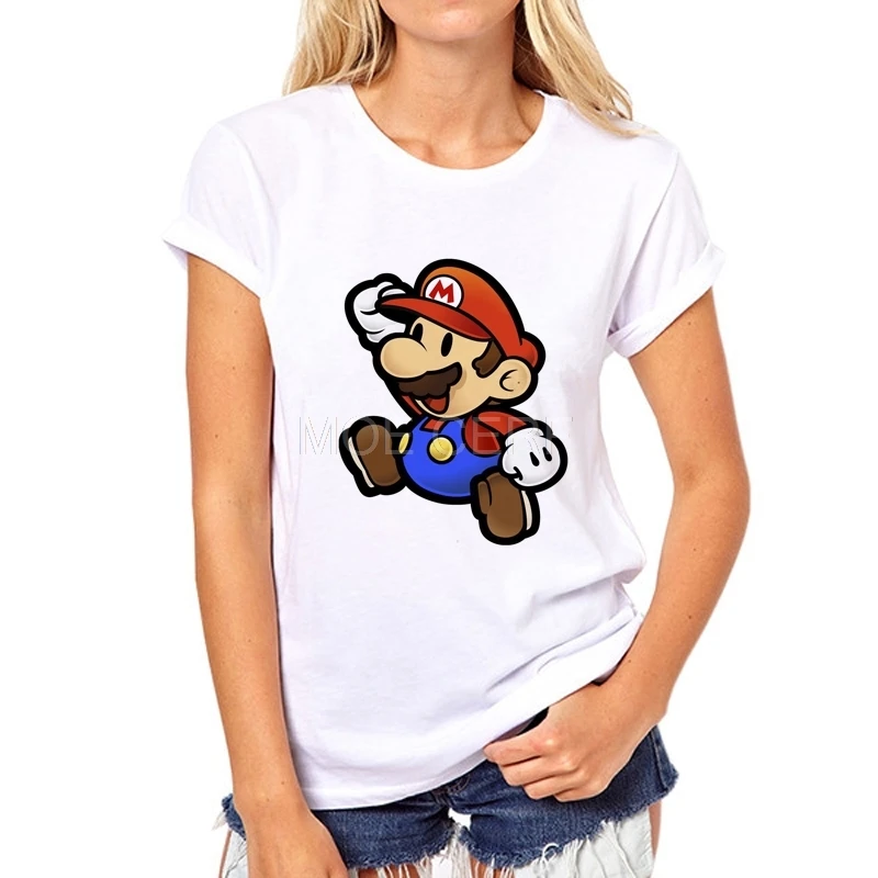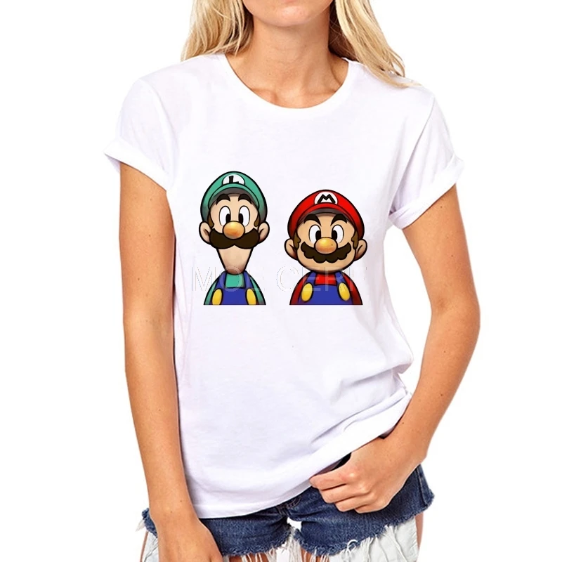 Fashion short sleeve MARIO printed Funny t-shirt women Cartoon leisure tee tops Factory direct sales can be customized 37W-7#