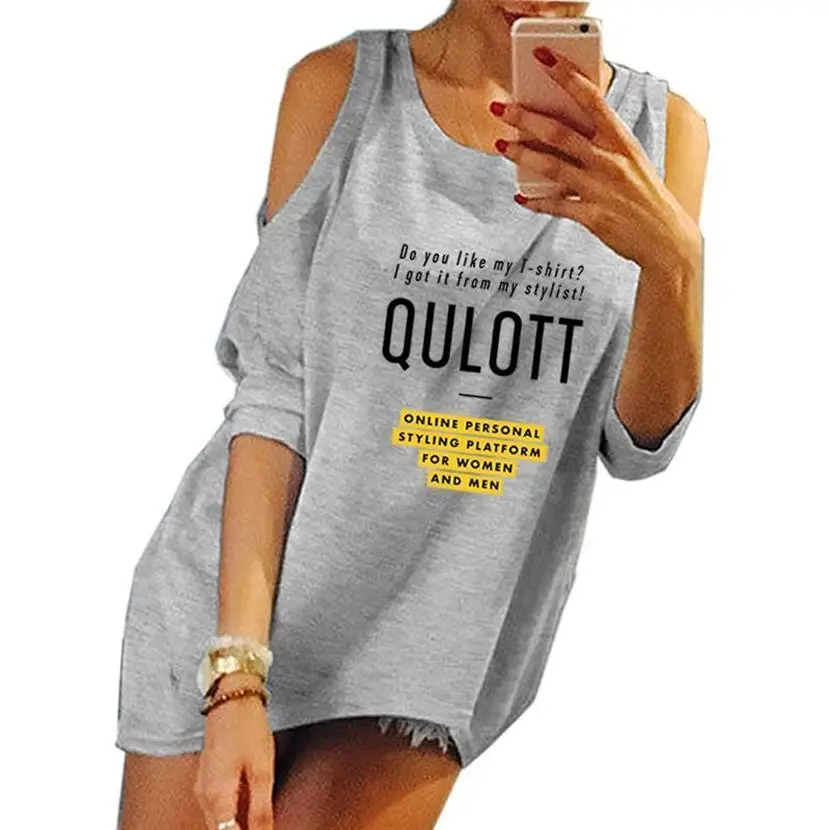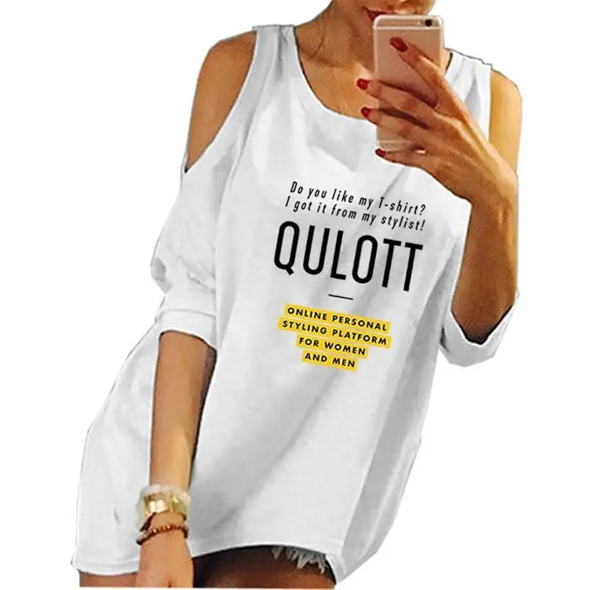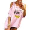 Fashion Sleeveless Shoulders QULOTT Letters Print T-Shirt For Women Women Tshirt T-Shirt Female Tops Cotton Graphic Tees Women