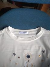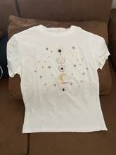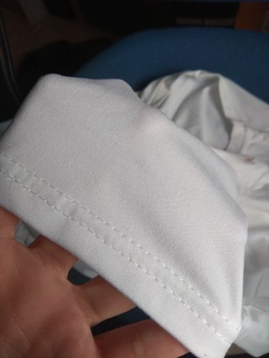 T-shirt is not cotton. The color is more "milky" than white. In my 48 size in the chest is a little big, on the hips I would like more freely. In general, a pretty thing. I hope it won't be hot in the summer.