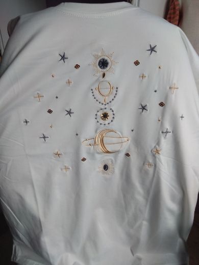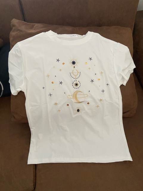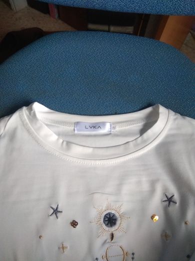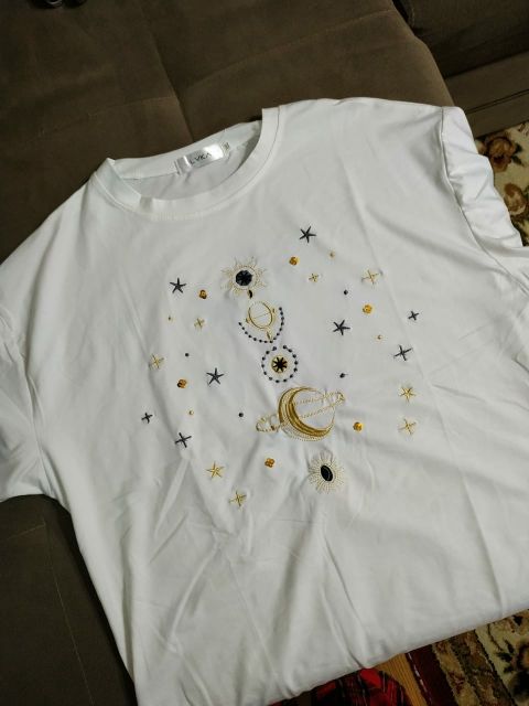 T-shirt for such a price is chic. Embroidery quality, threads do not stick out. The only "but" is the fabric of the T-shirt. Synthetics and as if not .. Incomprehensible such material. But nice, soft. I took a white T-shirt-almost does not shine through. At its size 42-44 took XL specially to be free, and everything is OK.