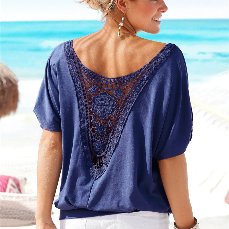 Fashion T Shirt Women Plus Size XXXXL 5XL Summer Casual 0-Neck Top Tee Harajuku Mujer Black Vintage Female Clothing Lace T-Shirt