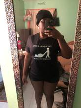 Excellent t-shirt with a funny print. Quality and pleasant to the body material, not synthetics, so it does not stretch much. In length, 2xl for a height of 164 cm to about the middle of the thigh. The quality of the print is also at a height, after washing nothing falls off, the color saturation remained the same. All seams are stitched, no protruding threads. I recommend!