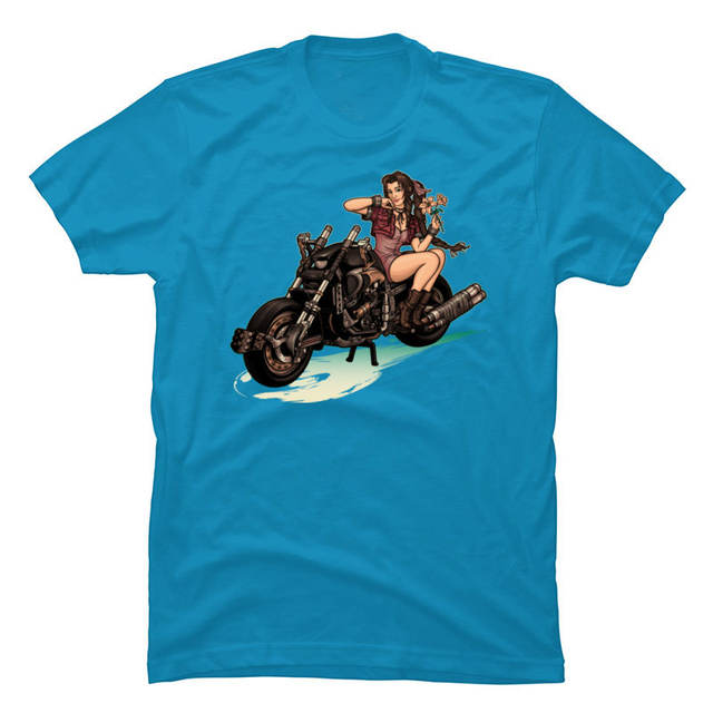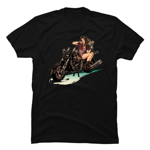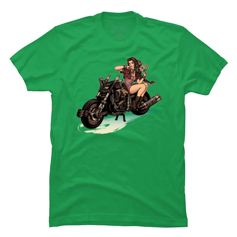 Final Fantasy PinUp Girl Motorcycle Tops T Shirt New Arrival O Neck Faddish Design Cotton Man T Shirts Europe Tee-Shirts Black