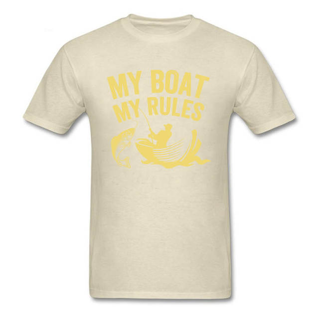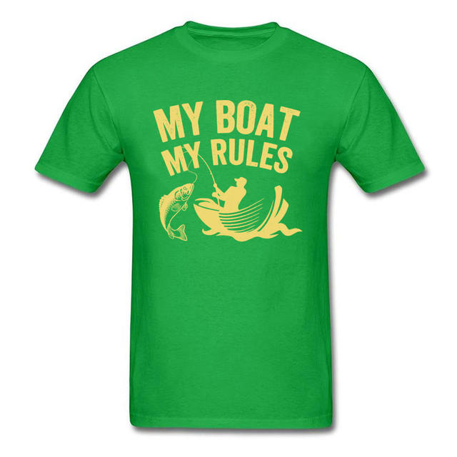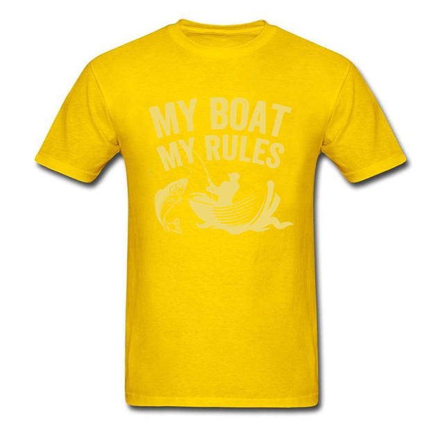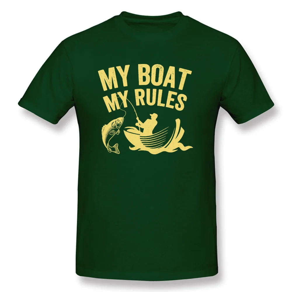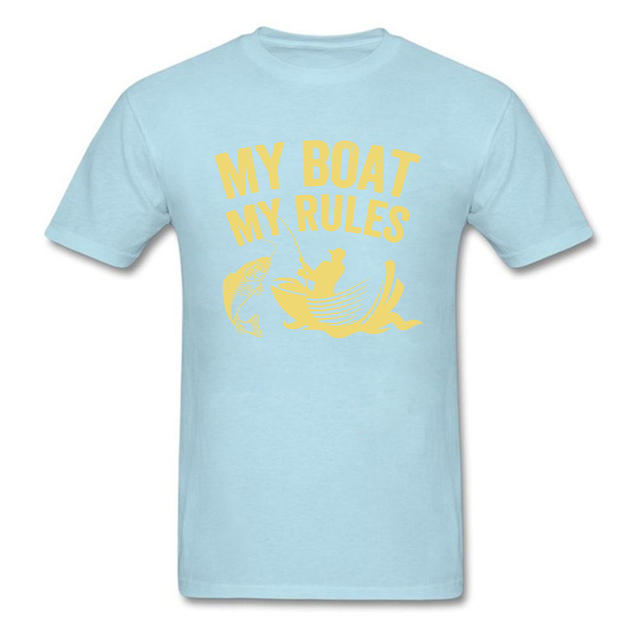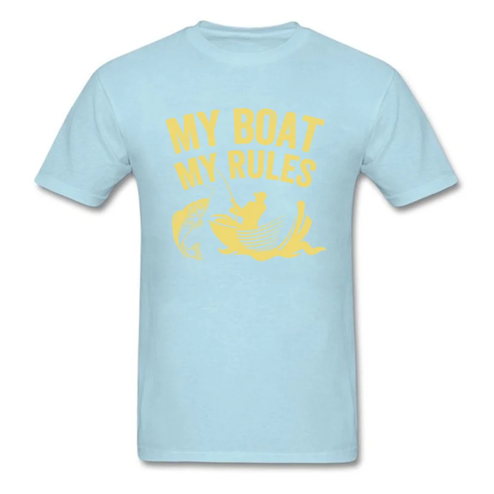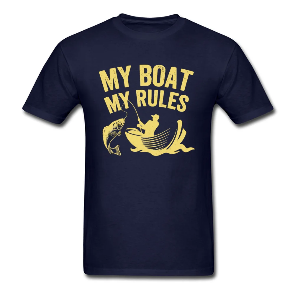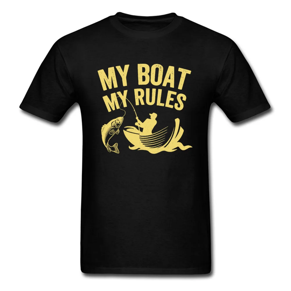 Fishinger Fish Men’s Father T Shirt My Boat My Rules Fisherman 100% Cotton Fabric Leisure Tops T Shirt Short Sleeve Tops & Tees