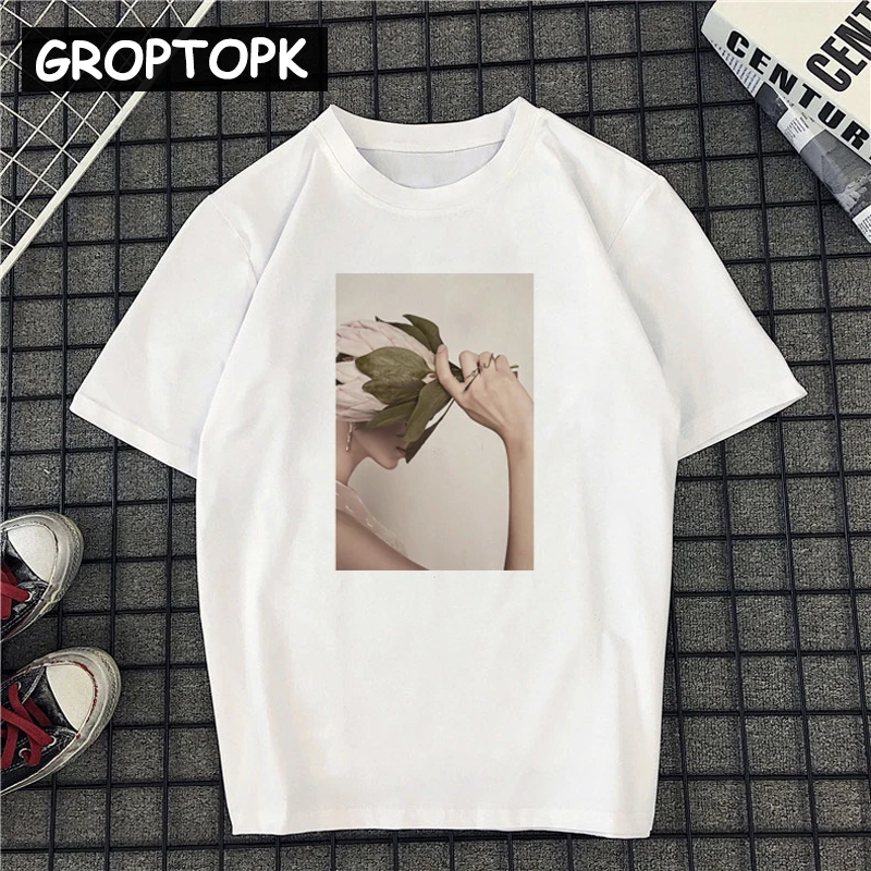 Flower Girl Portrait Female T-shirt Summer Cotton Tumblr Art White TShirt Women Clothes 2019 Harajuku Vogue Top Tee Shirt Femme