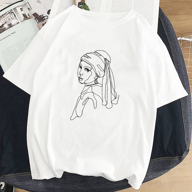 Fun David Print Tops Women Fashion Large Size Loose Hoods Chic Harajuku Van Gogh Painting Summer Casual O-neck Women T-Shirt