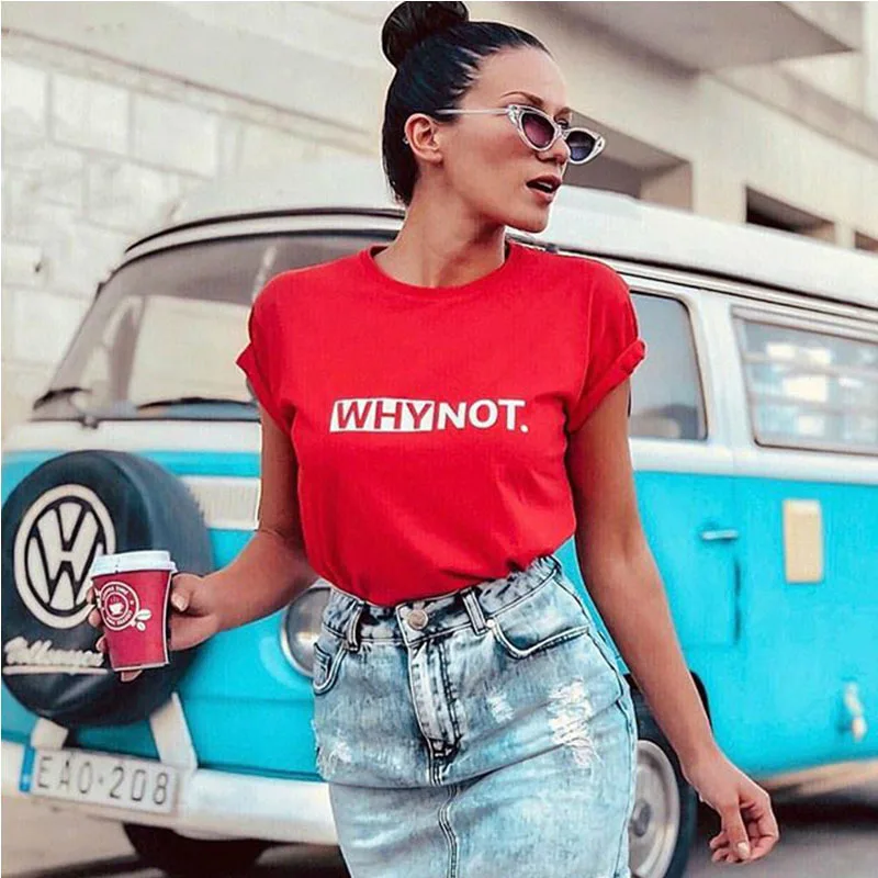 Funny Letters T Shirt Women Cotton Summer Printed T-Shirt Casual Tops Tee Women Short Sleeve Female White Black Red Tees
