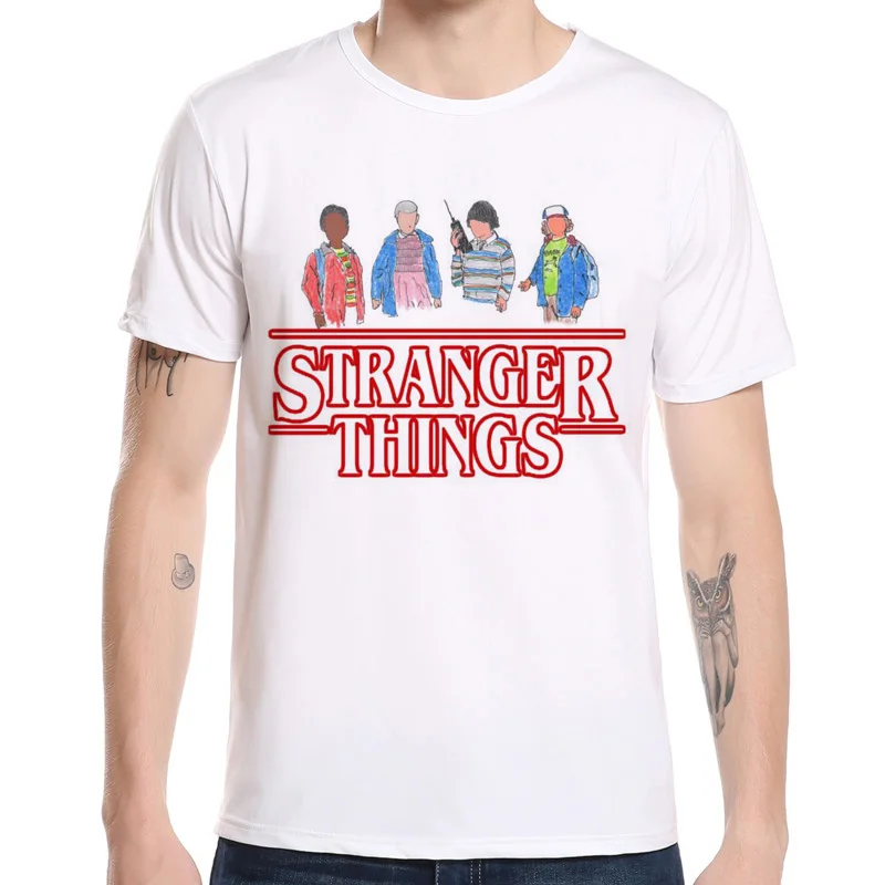 Funny Tops White T-shirt Newest Stranger Things Printing Men’s T shirt Casual Short Sleeve Tees Hipster Clothing D9-4#