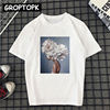 Girl with Flower Art Women Tshirt Harajuku White T-shirt Summer 2019 Tee Shirt Femme Portrait Photography Vintage Korean Clothes