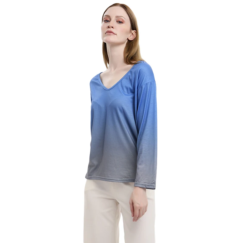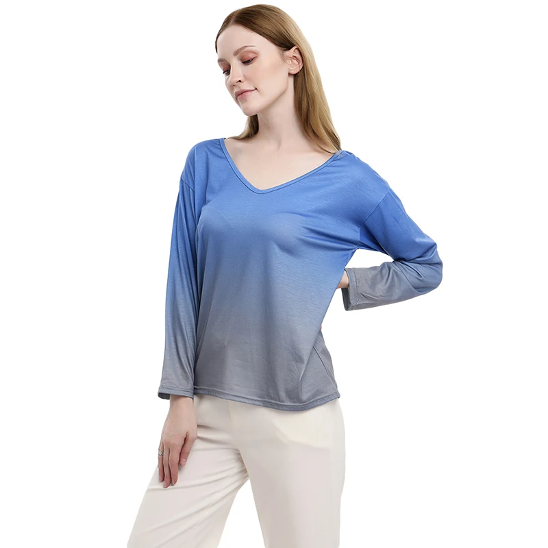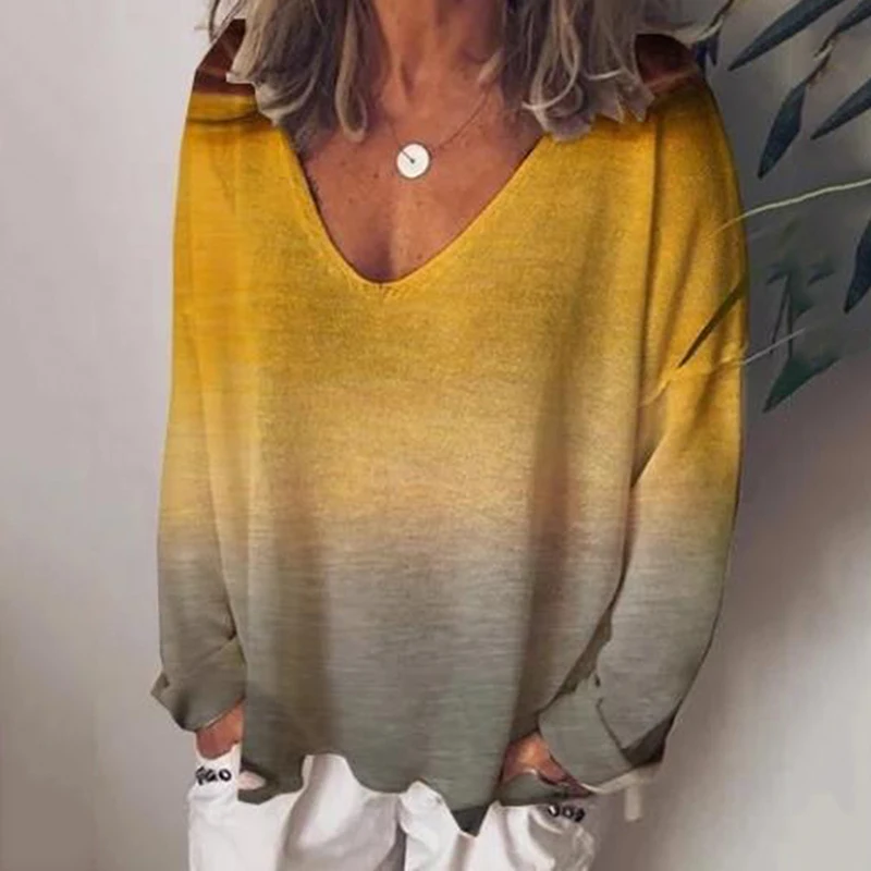Casual Autumn Women’s T-shirts Plus Size Gradient Color V-Neck Tops Tee 2020 Female t shirt Long Sleeve For Ladies Tee