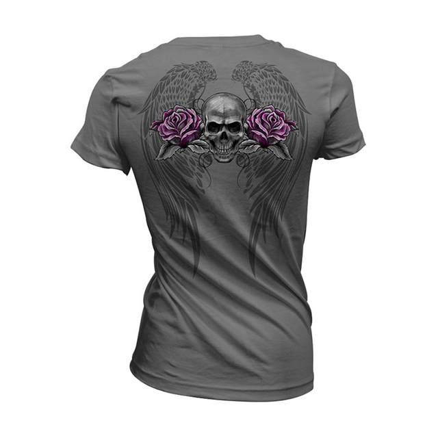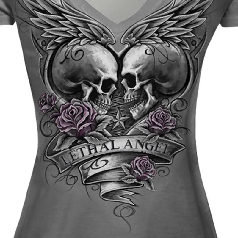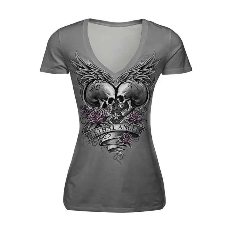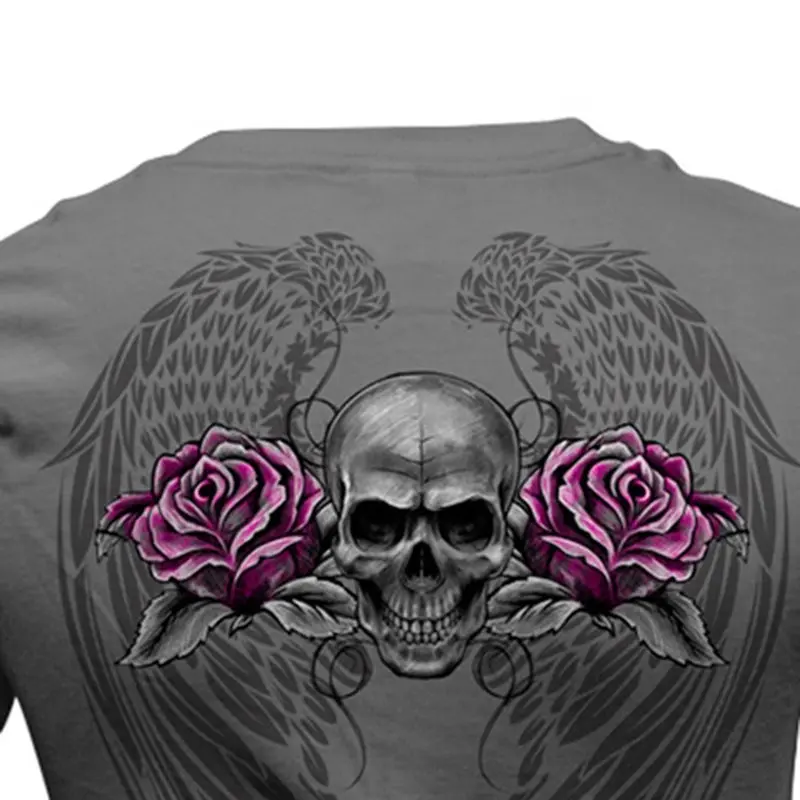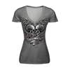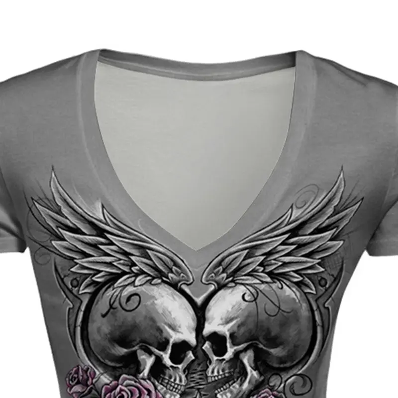 Gray T Shirts Women Punk Streetwear Gothic Tops Haraajuku Skull Flower Print Elastic Slim Plus Size Girl Trendy Summer Tee Shirt