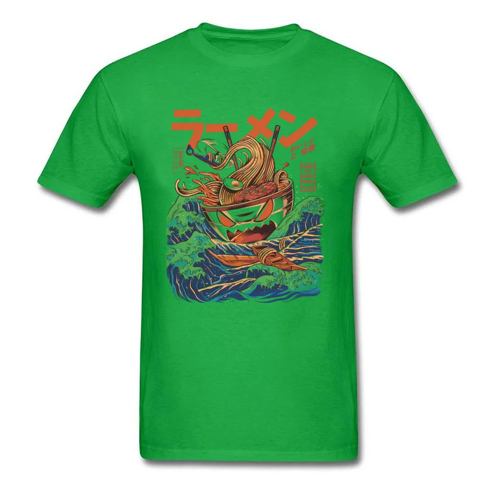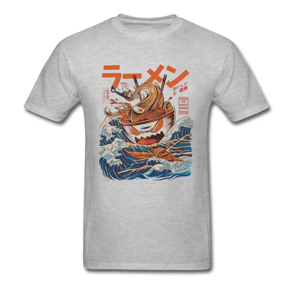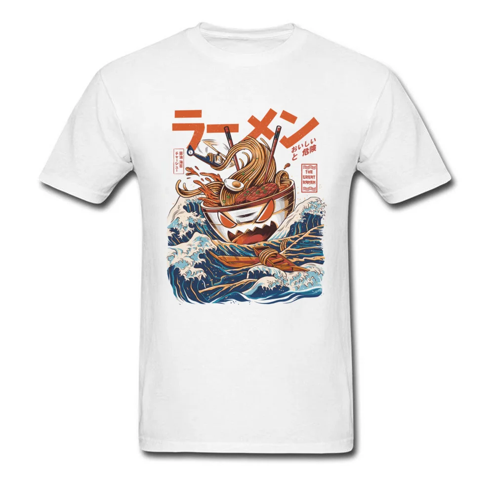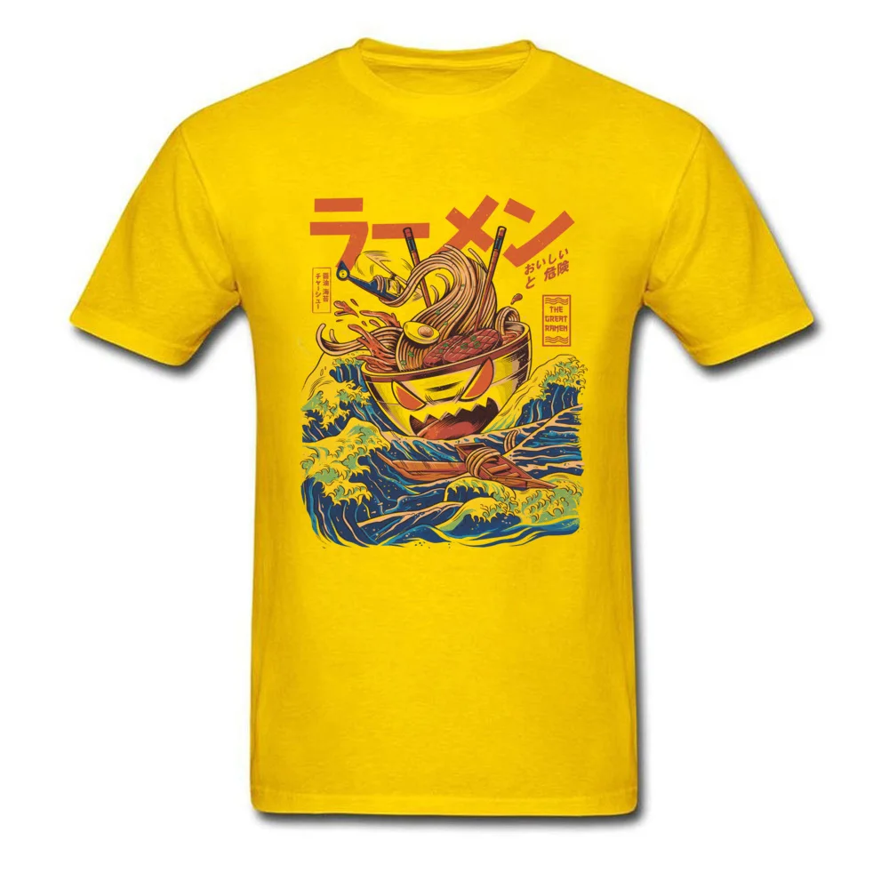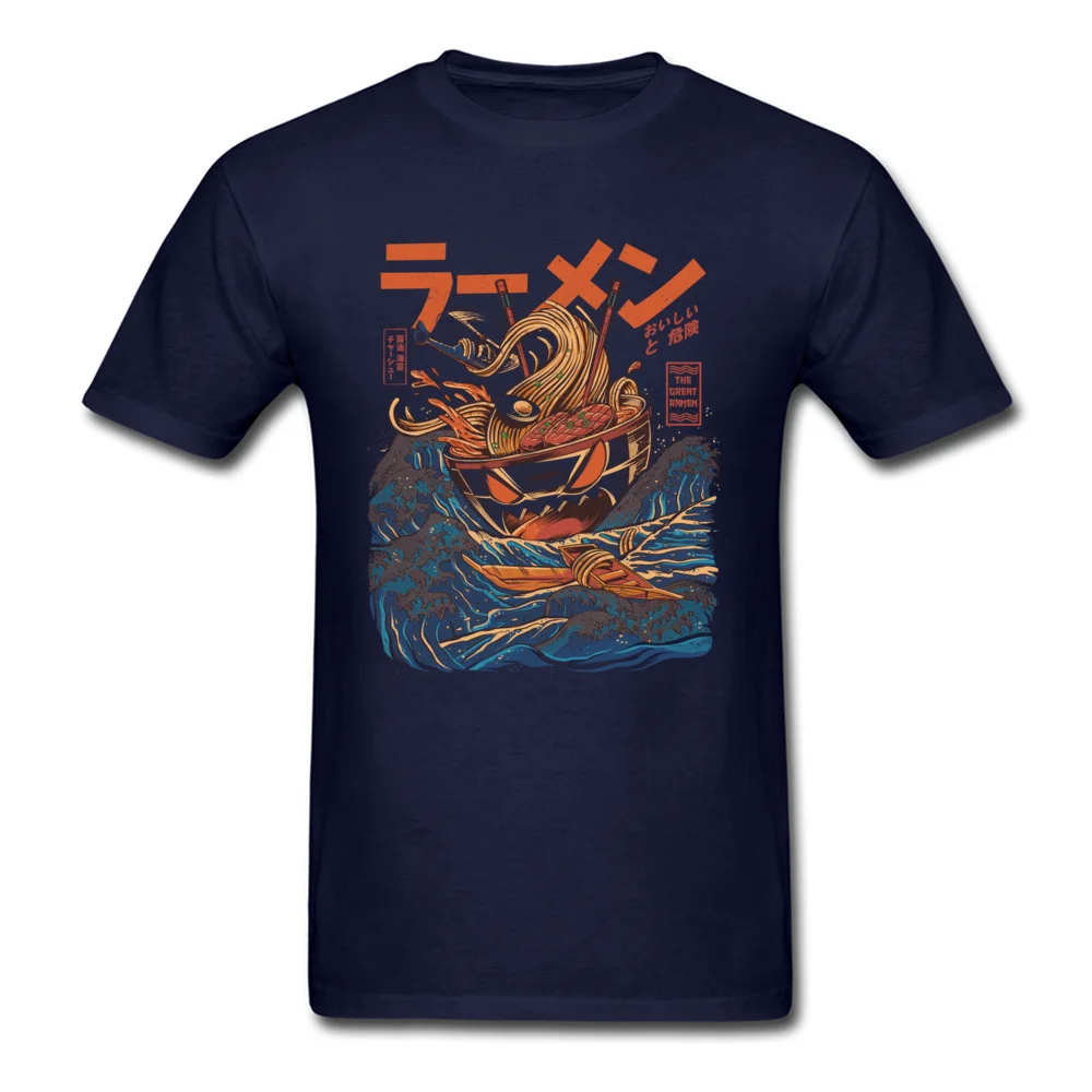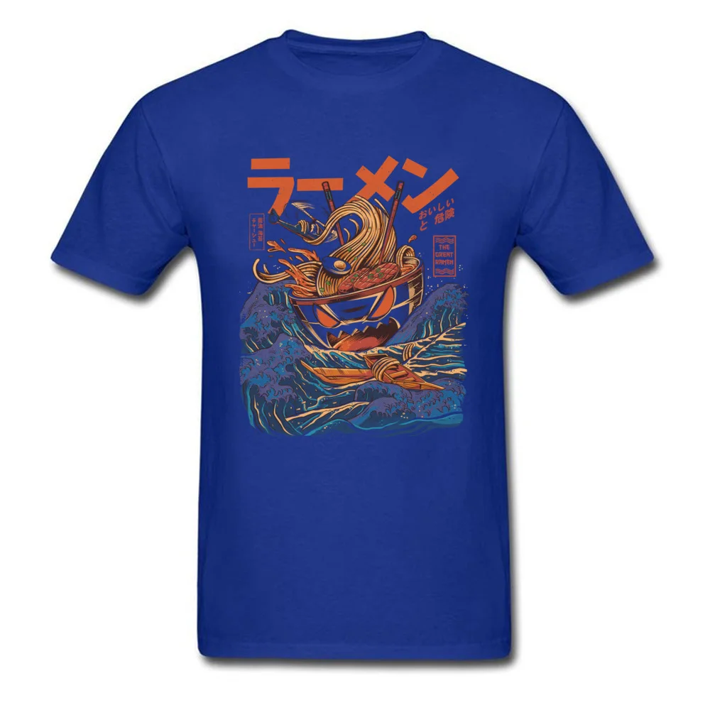 Product Name: Great Ramen off Kanagawa Retro Anime Tees Print O-Neck Summer Autumn 100% Cotton Short Sleeve T-Shirt Men Funny Tops Shirts