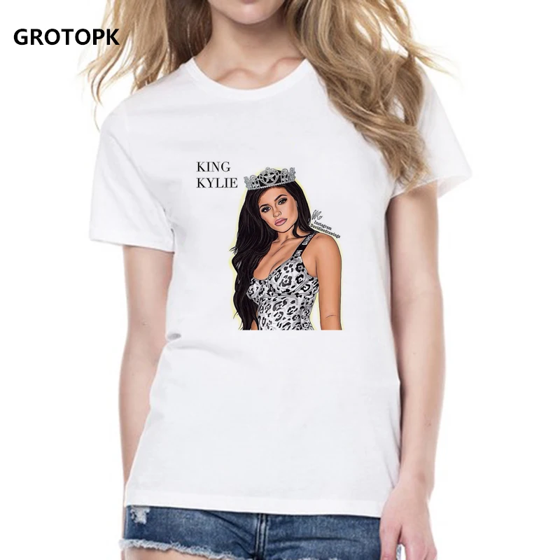 GROTOPK King Kyliejenne Tumblr T Shirts Women T-shirt Funny Printed Summer Streetwear Tops Tee Tshirt Soft Clothing Harajuku
