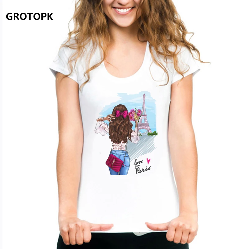 GROTOPK Love Paris Holiday Female T-shirt White T-shirt for Women Harajuku Streetwear New Arrival 2019 Korean Fashion Clothing