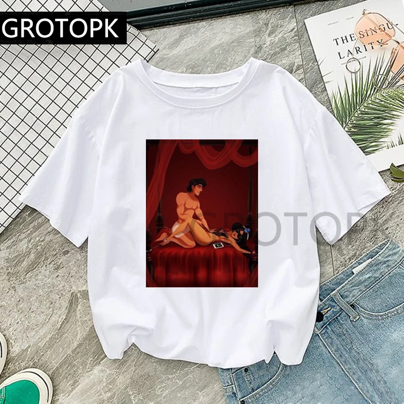 GROTOPK Vintage Aladdin&Jasmin Romantic Night T Shirt Cotton O-Neck Print Casual Short Sleeve Harajuku Women’s T-Shirt Plus Size