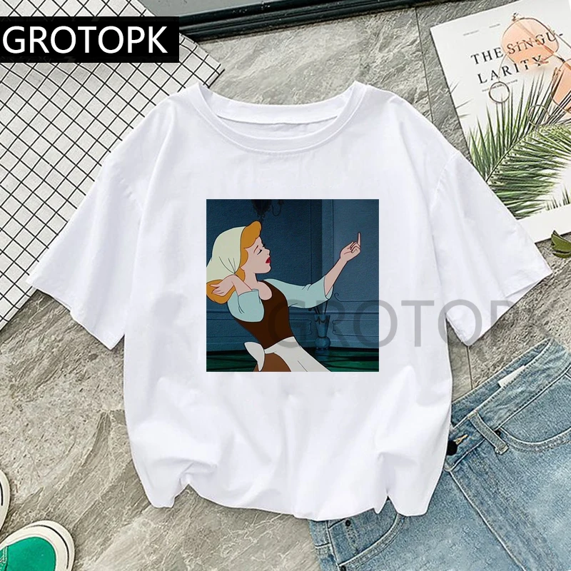 GROTOPK Women’s Spoof T Shirt Cotton O-Neck Rude Cinderella T-Shirt Punk Print Casual Short Sleeve Harajuku Tshirt Streetwear