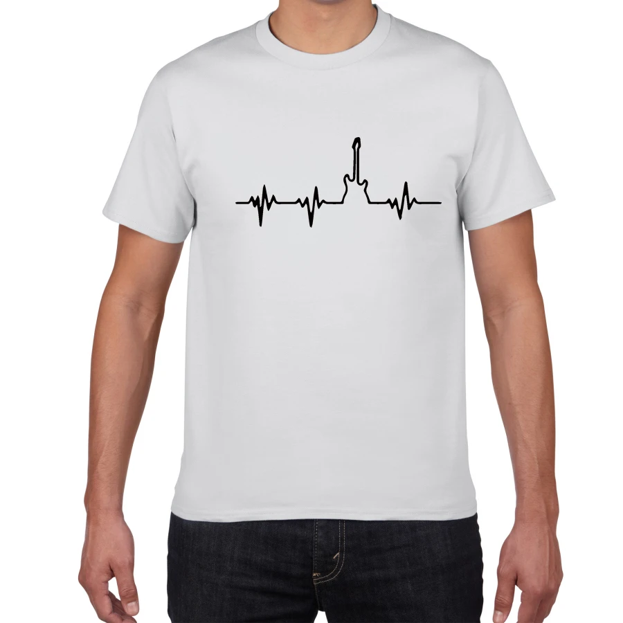 Guitar heartbeating Sarcastic Graphic Novelty Funny T Shirt men cool hip hop tshirt men streetwear loose Harajuku men cloth