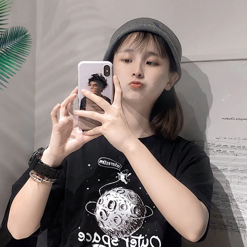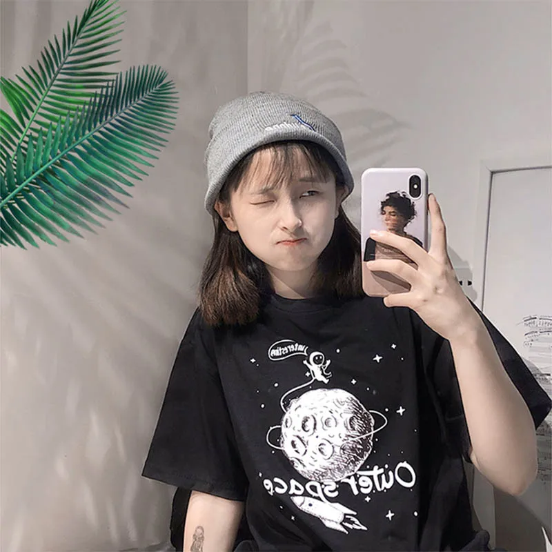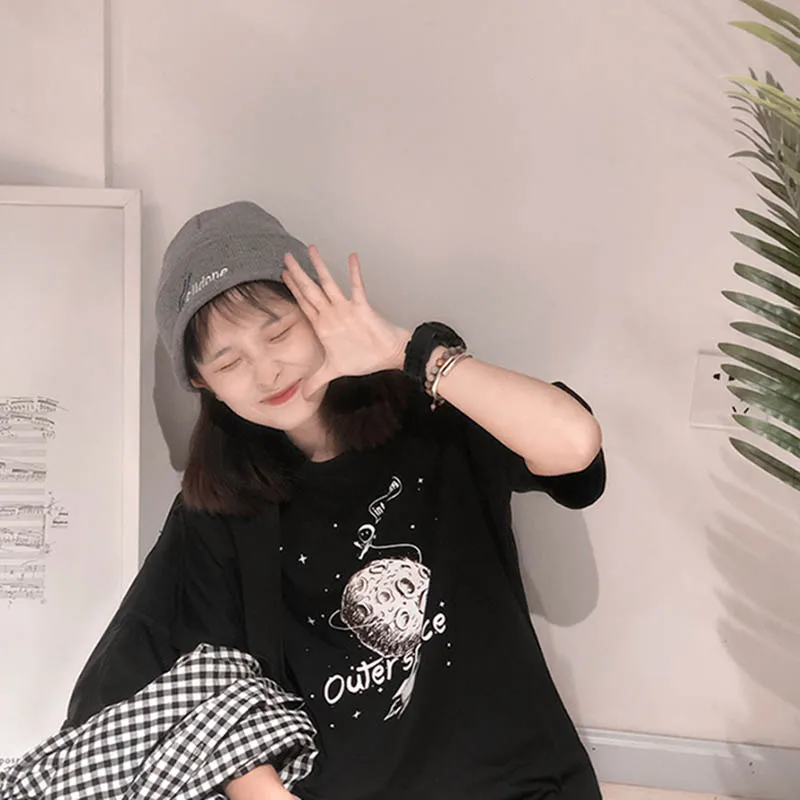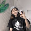 Harajuku retro Korea Funny black casual loose tops tees New summer Ulzzang fashion space ins print short-sleeved women’s t-shirt