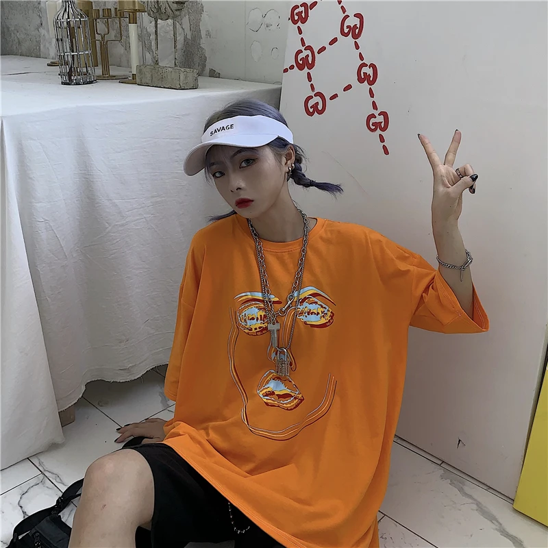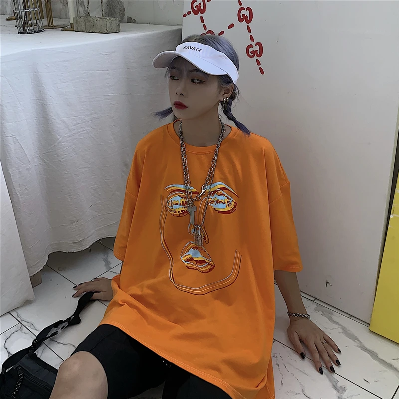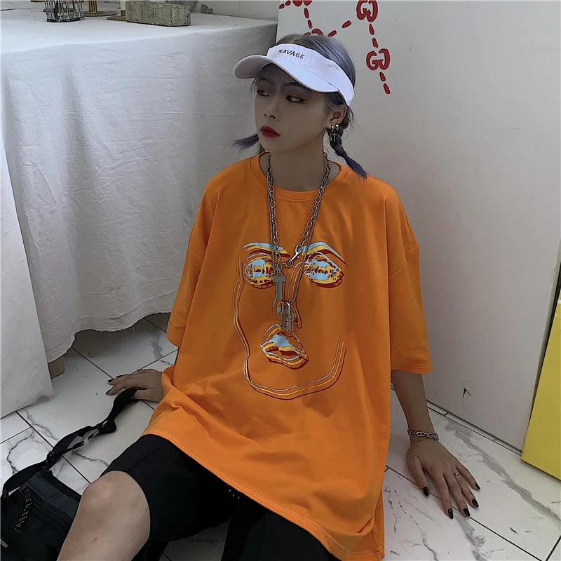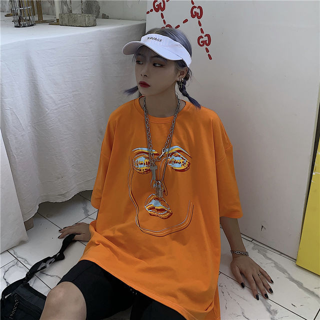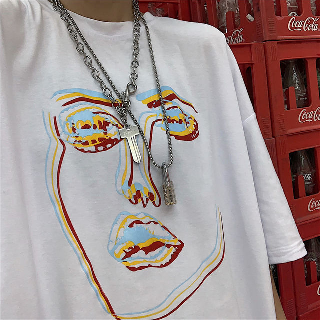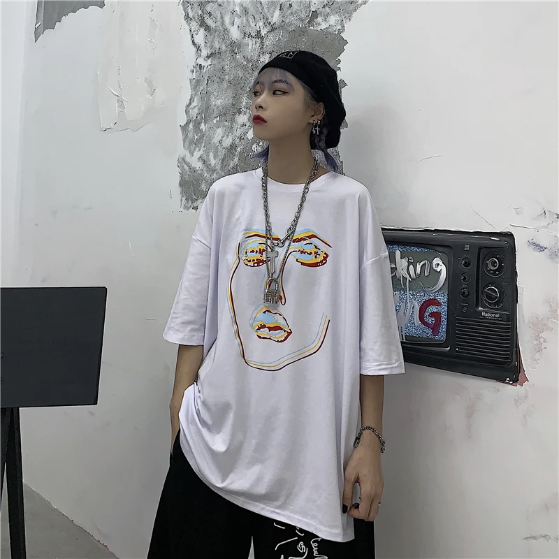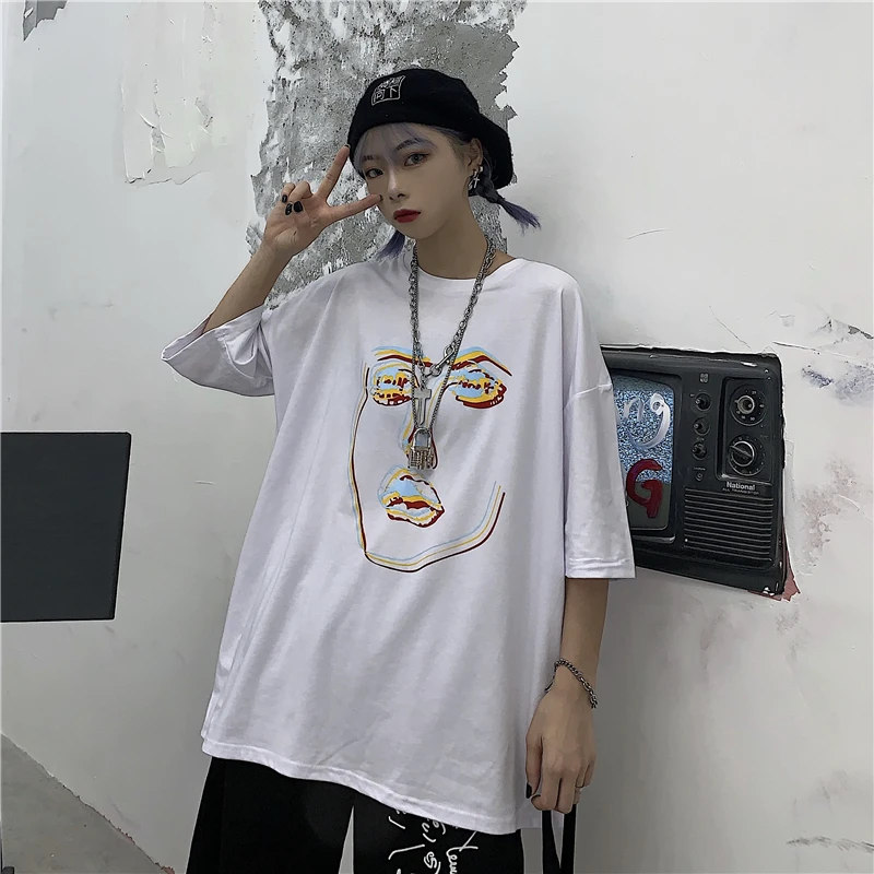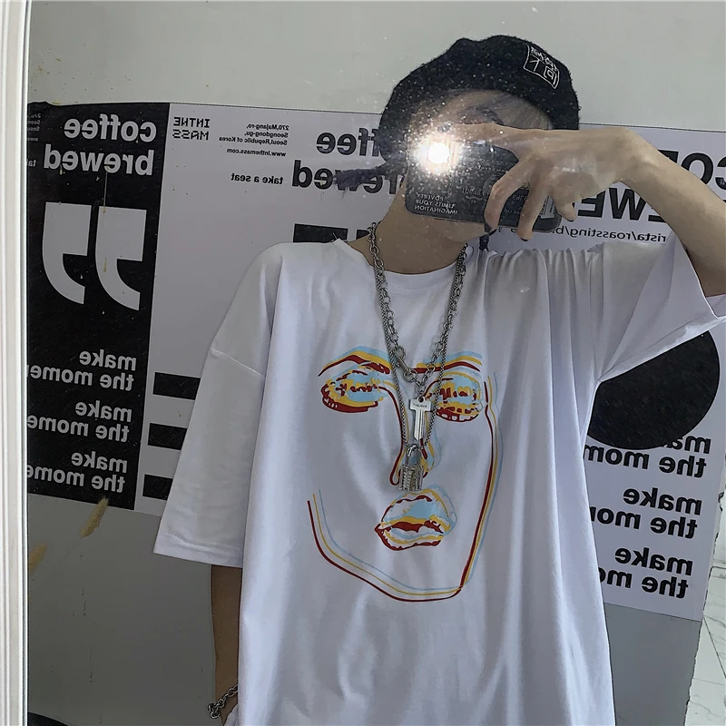 Harajuku Short-sleeve New Summer Korean Hip-Hop ins tops tees personalized portrait print loose wild casual tide women T-shirt