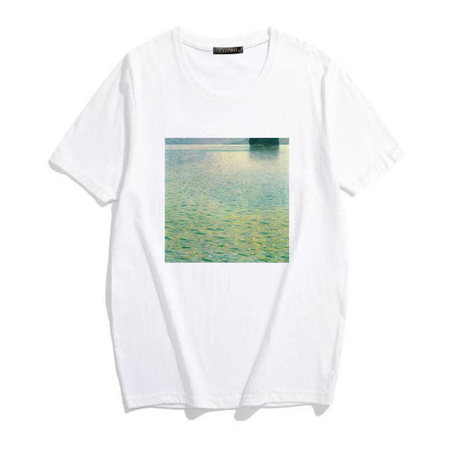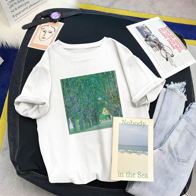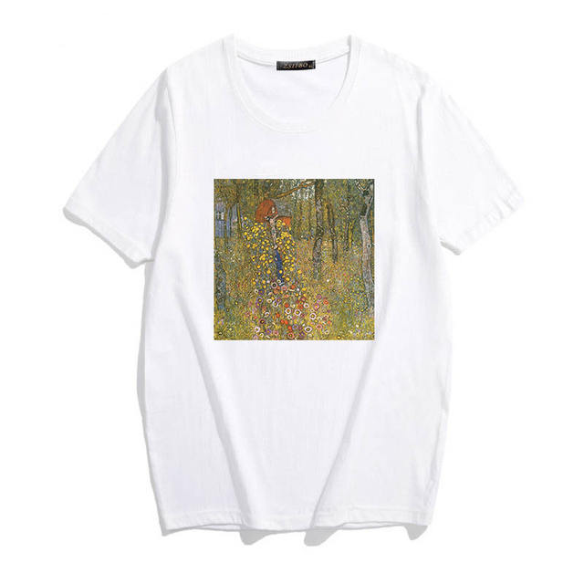 Harajuku women t-shirt Gustav Klimt Oil Painting Sweet Lady Aesthetics Pattern Flowers plants Print casual art retro loose tops