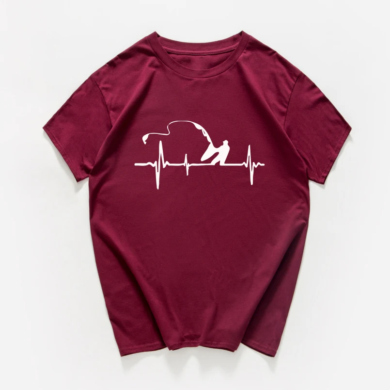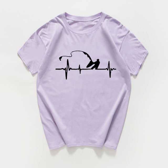 Heartbeat evolution fishing funny T Shirt women 100% cotton Tops tees vintage T-Shirts cool streetwear women clothes harajuku