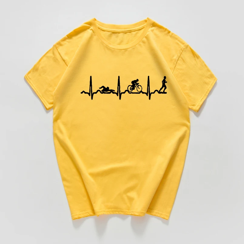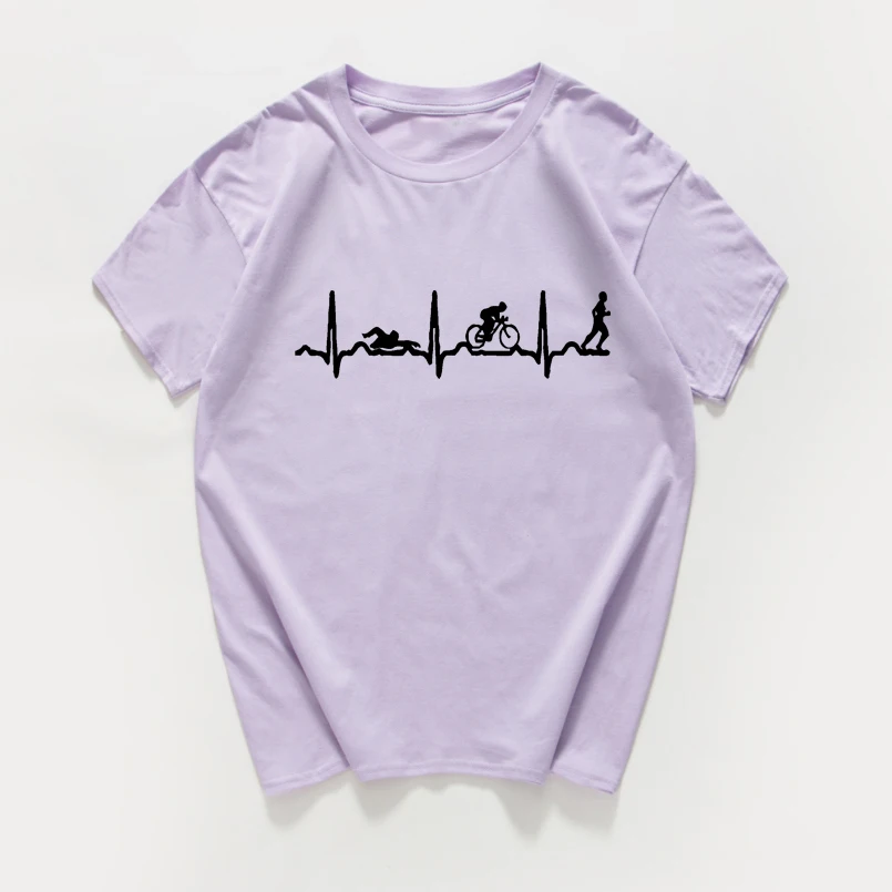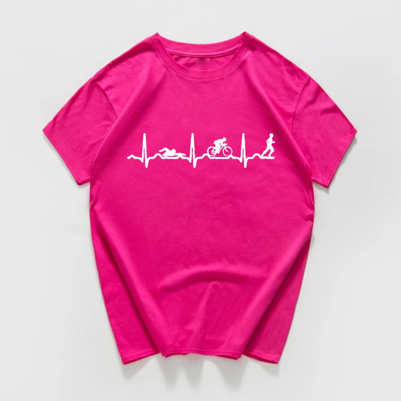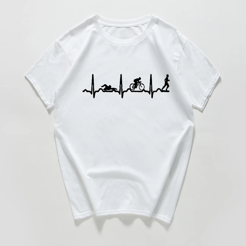 Heartbeat evolution swimming biking runing funny T Shirt women cotton vintage Tops tees cool streetwear women clothes harajuku