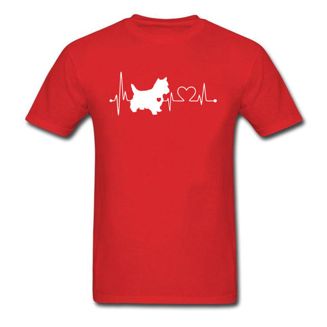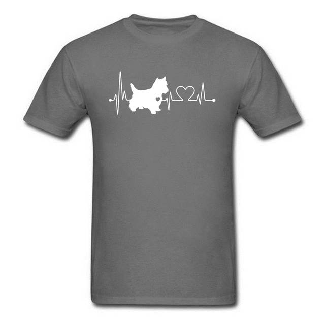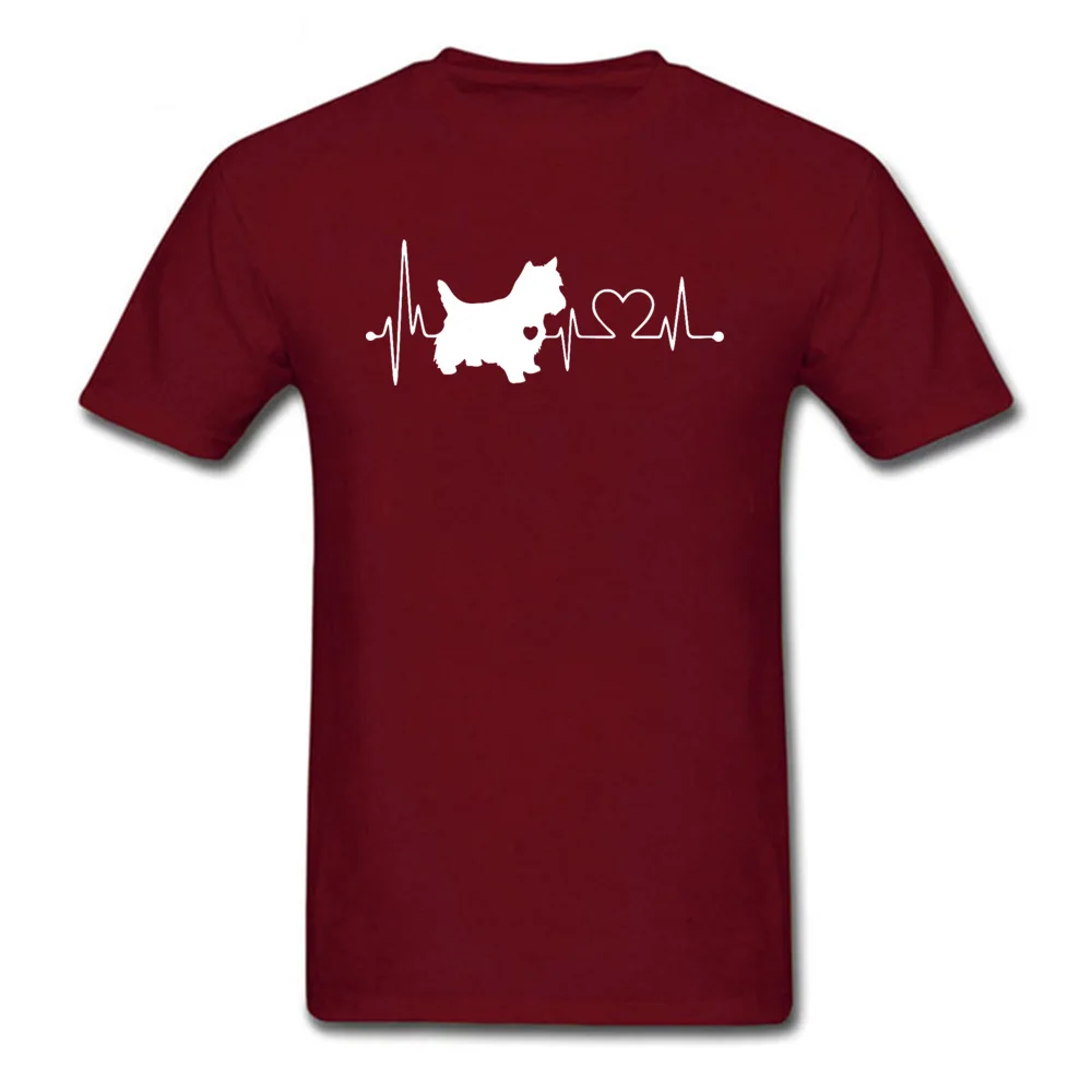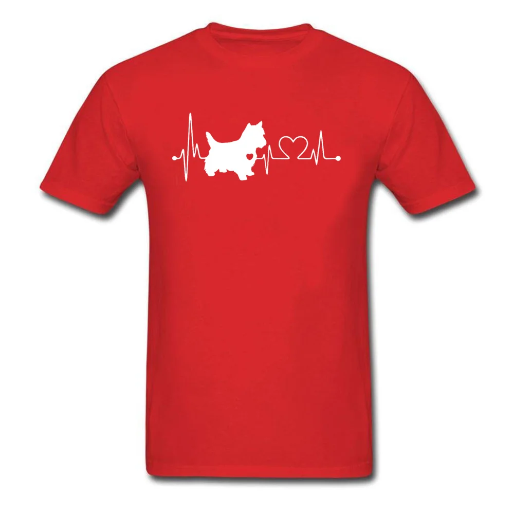 Heartbeat Westie Shih Tzu Dog Printed Top T-shirts O Neck Cotton Short Sleeve Tees for Men Animal Tops Shirt Summer/Autumn