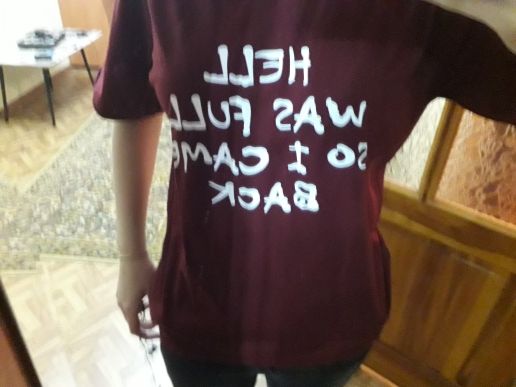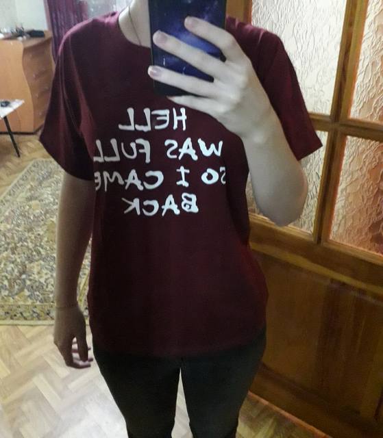 Just in case took on size more (M) But the T-shirt itself is very pleasant, does not smell, came for a month, the inscription looks good