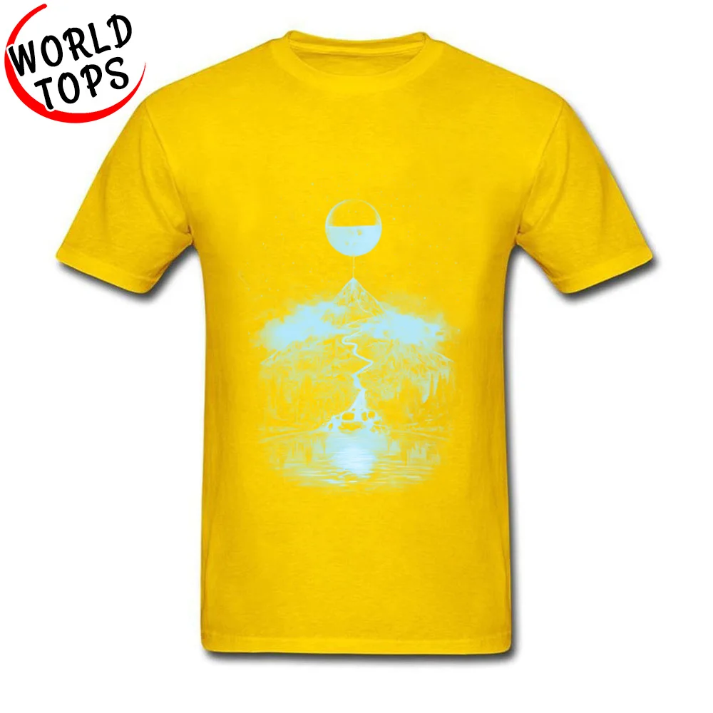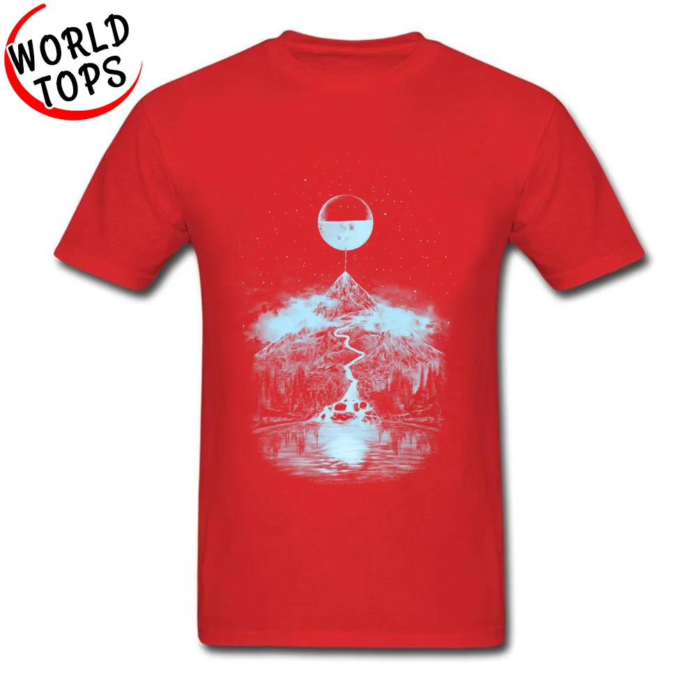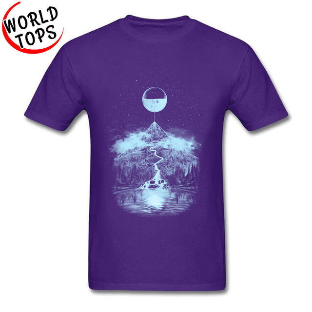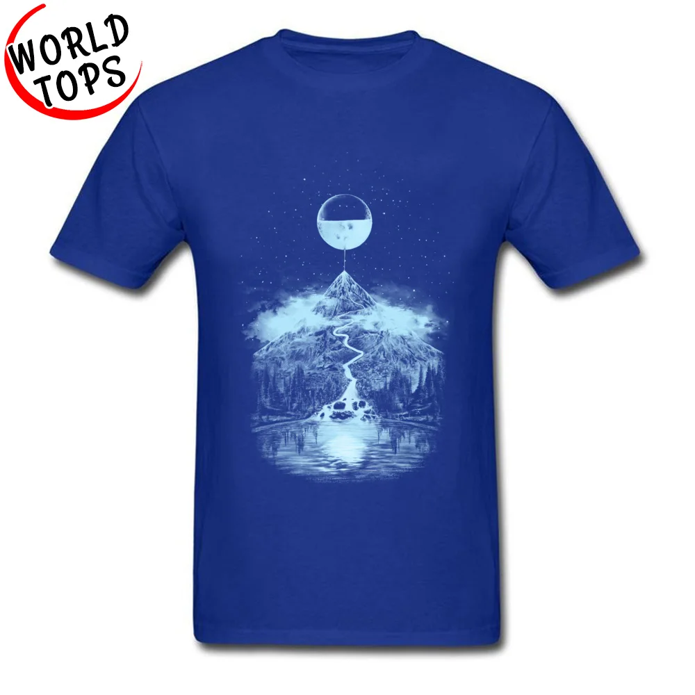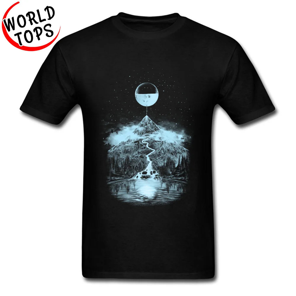 High Quality Men’s Black Print T-Shirts Night Moonshine Mountains And Rivers Summer T-Shirt 100% Natural Cotton Tops Tees