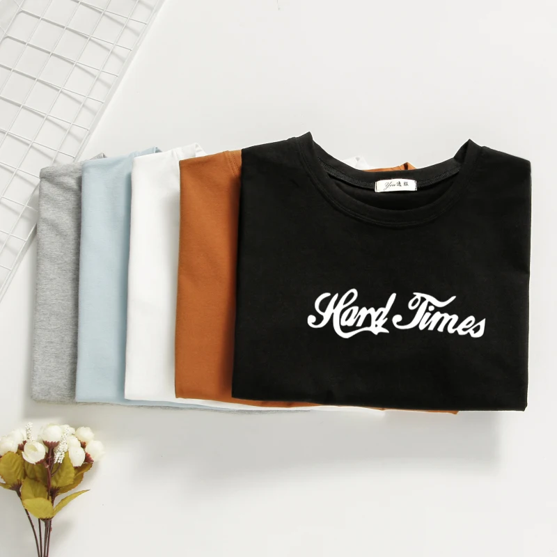 High Quality Women T Shirt Summer Casual Short Sleeves 100% cotton Top breathable Tee Shirt HARD TIME printed Female Tshirt