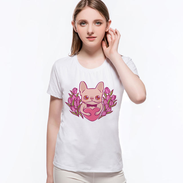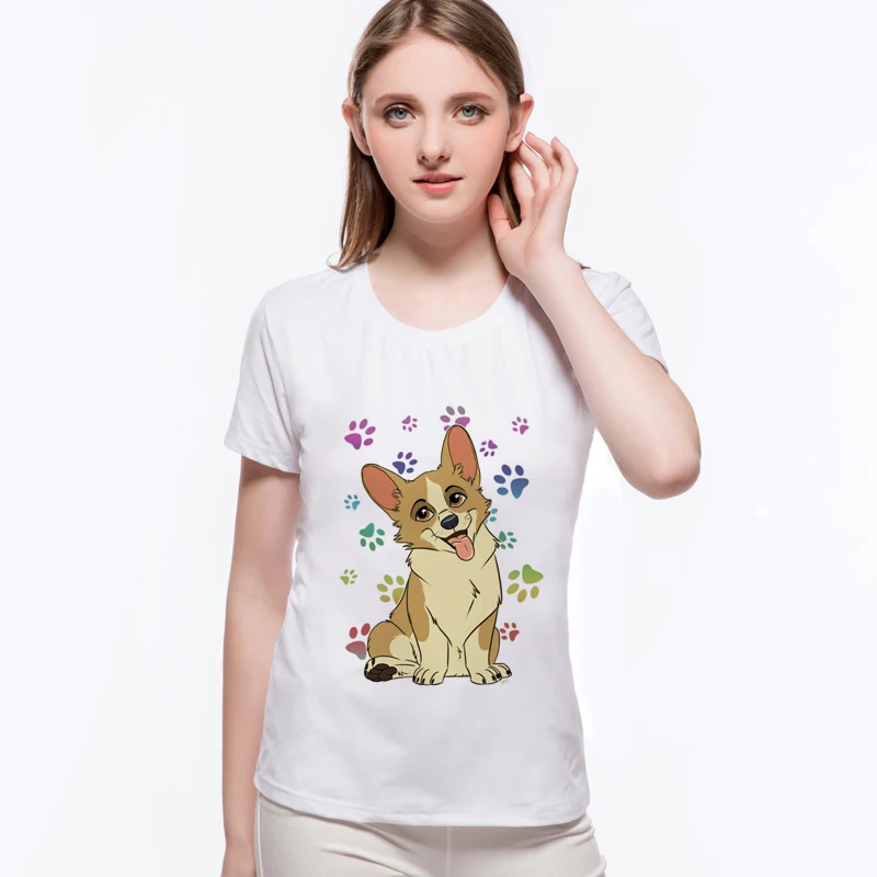 Hot Sale Dog Corgi T-Shirt Domestic Animal Design Novelty Tops Lady Cute French Bulldog Short Sleeve Tee Womens Clothing L10-C38