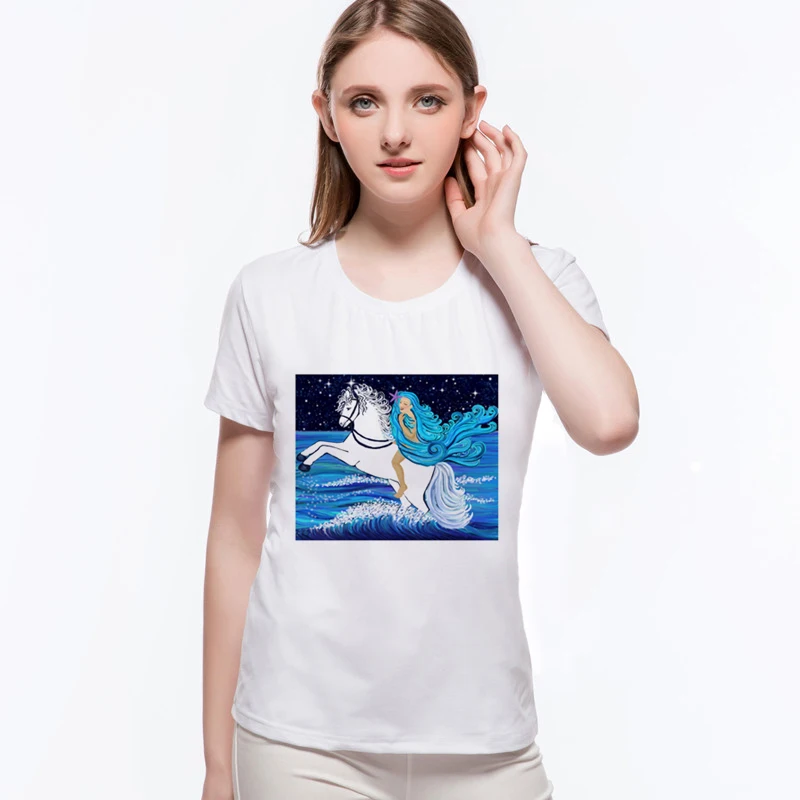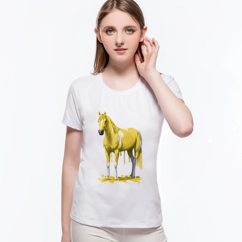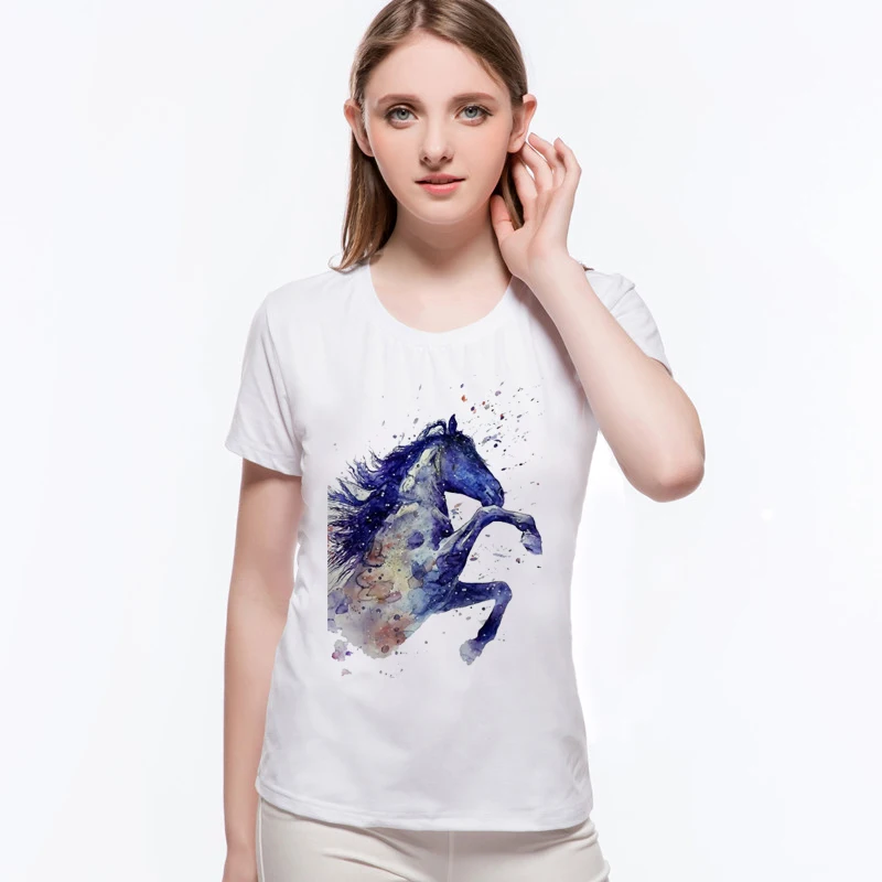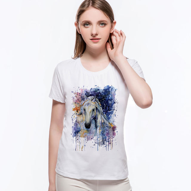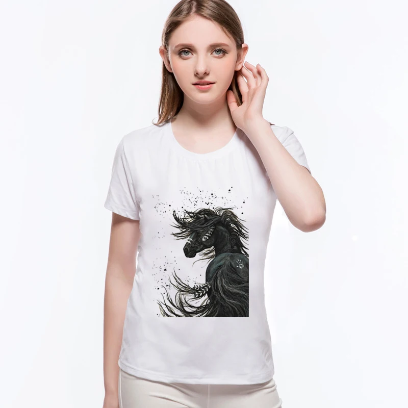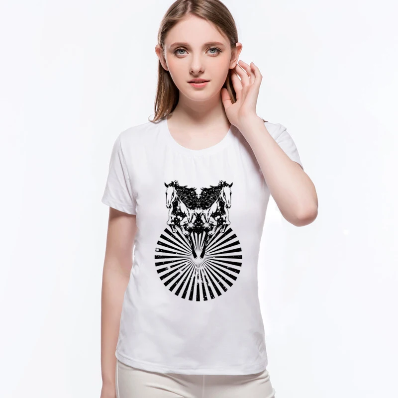 Hot Sale Original Folk-custom Horse Totem Casual Tee Shirt Brand Good Quality Summer Cotton Short Sleeve Women's T-shirtsL6-A7