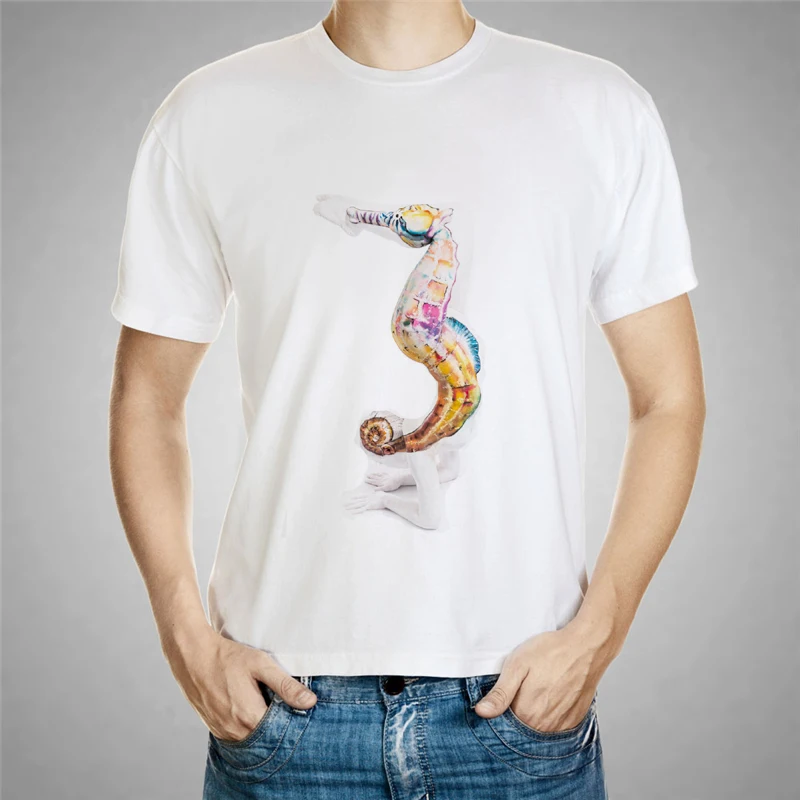 Human body painted hippocampus t shirt Abstract paintings Photo Men T Shirt brand clothing body building male tees 61-12#