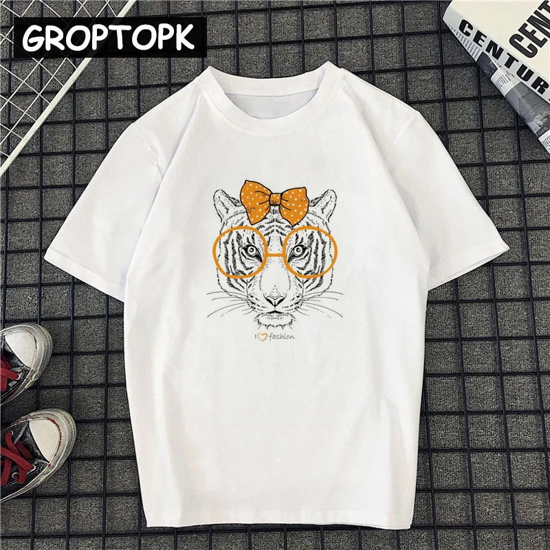 I Love Fashion Women T Shirt Summer Cotton White T-shirt Kawaii Animal Tiger Print Aesthetic Harajuku Top Funny T Shirts Women