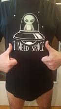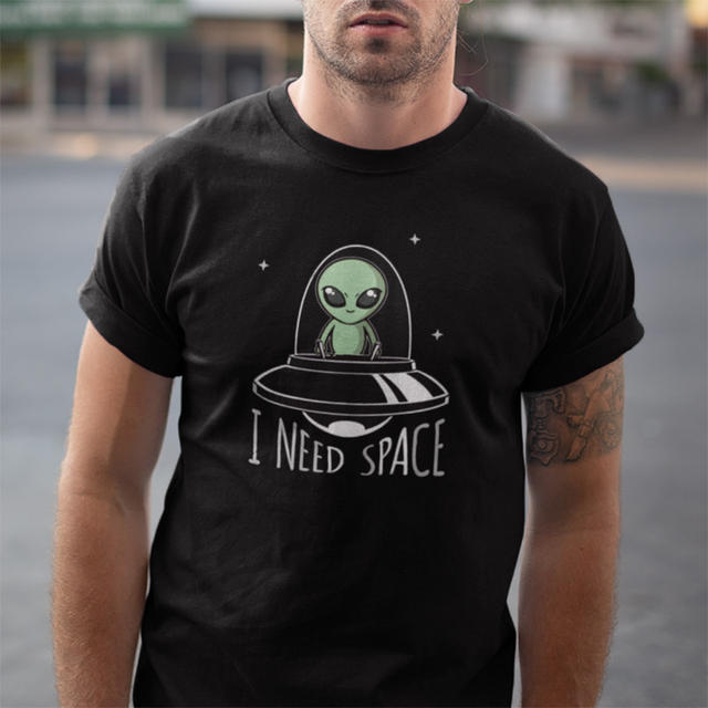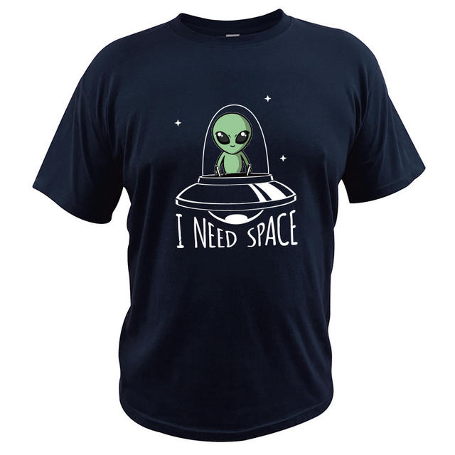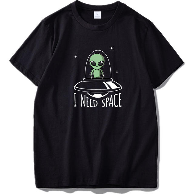 I Need Space T shirt Alien Go By UFO Cute Cartoon Original Design Short Sleeved High Quality 100% Cotton T-shirt EU Size